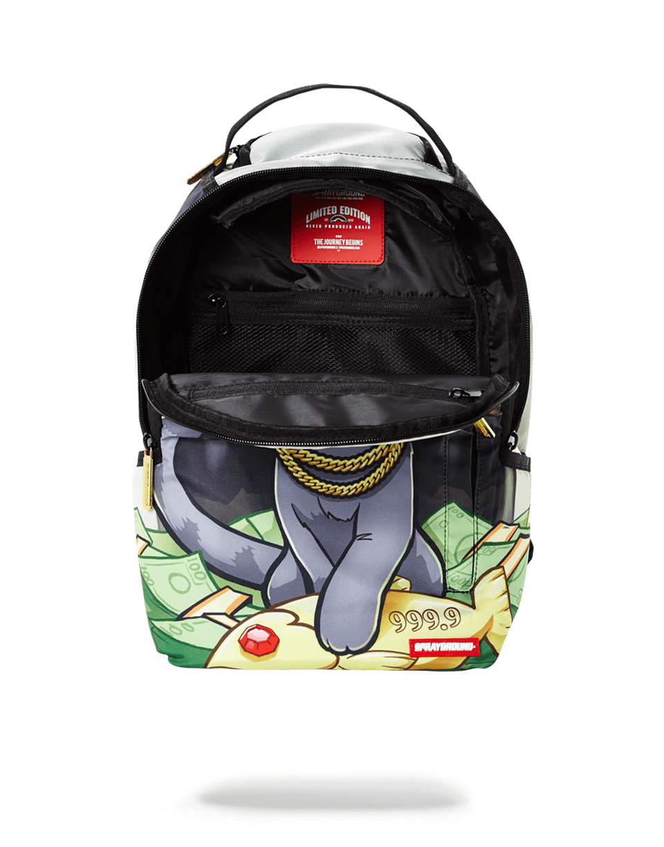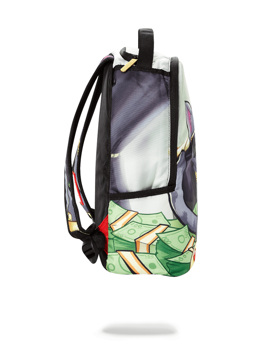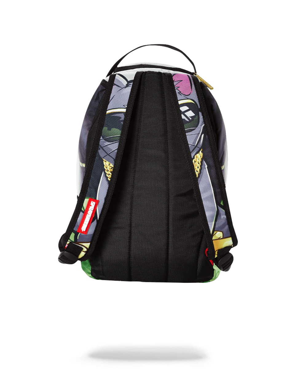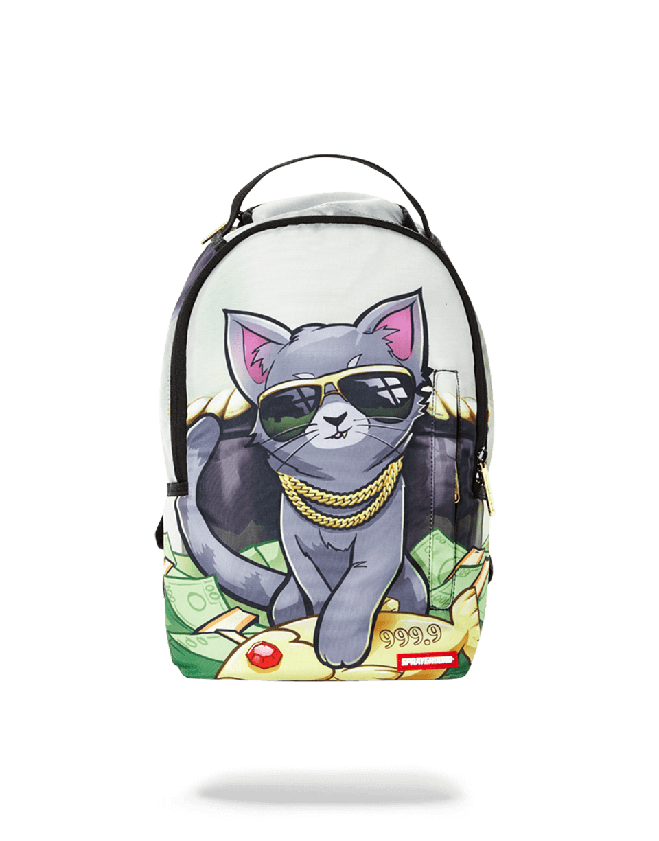 ExteriorDimensions: 15' x 5' x 10' ∙ Front zipper pocket ∙ Side pockets ∙ Zippered Stash pocket ∙ Ergonomic mesh back padding ∙ Adjustable Straps for custom sizing ∙ Nylon Zippers with Metal Hardware ∙ Metal 'Sprayground Authentic' badge ∙ Slide through back sleeve connects to Carry on luggage to free your hands