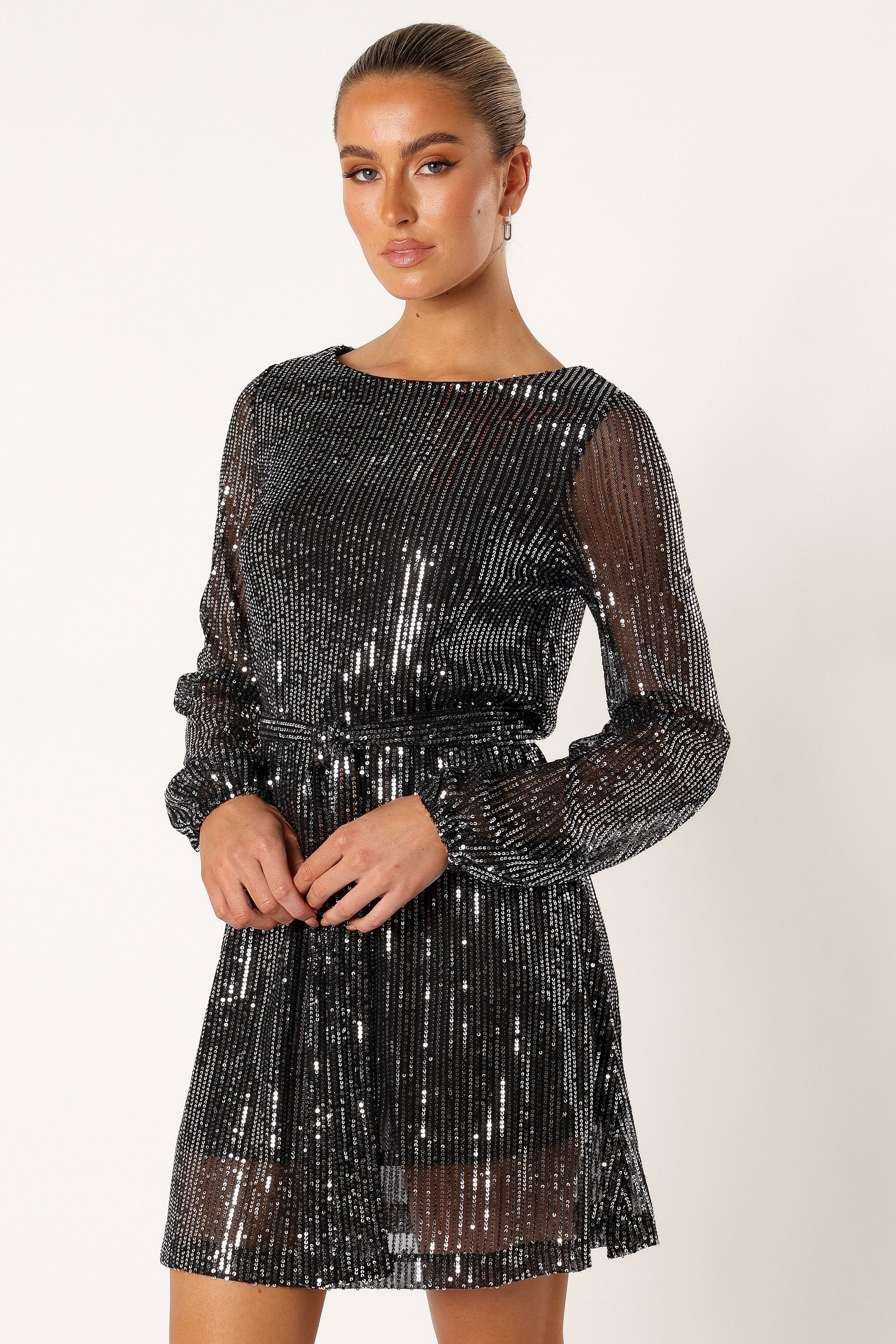 Linnie Long Sleeve Mini Dress - Black Sequin