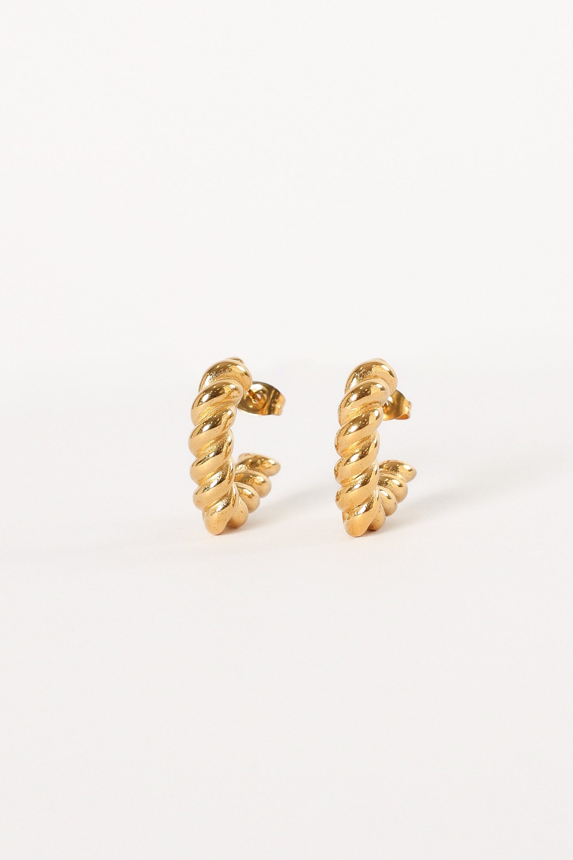 DETAILS Add a dash of glam to your everyday look with our Loella Earrings in Gold. These twist hoop beauties are not your average earrings, boasting an open-ended design that's oh-so-trendy!