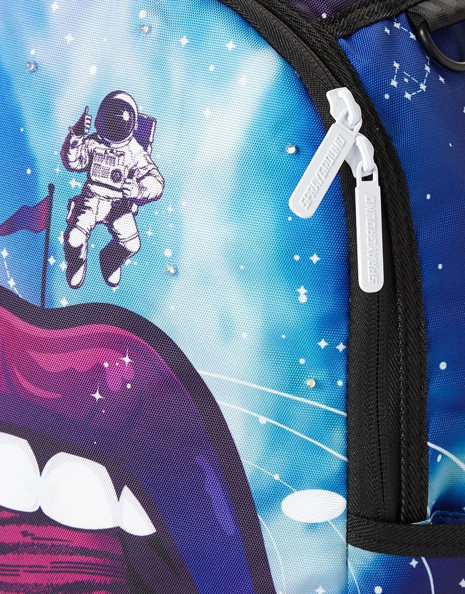 ExteriorDimensions: 18' x 6' x 11.5' ∙ Front zipper pocket ∙ Side pockets ∙ Zippered Stash pocket ∙ Ergonomic mesh back padding ∙ Adjustable Straps for custom sizing ∙ Nylon Zippers with Metal Hardware ∙ Metal 'Sprayground Authentic' badge ∙ Slide through back sleeve connects to Carry on luggage to free your hands