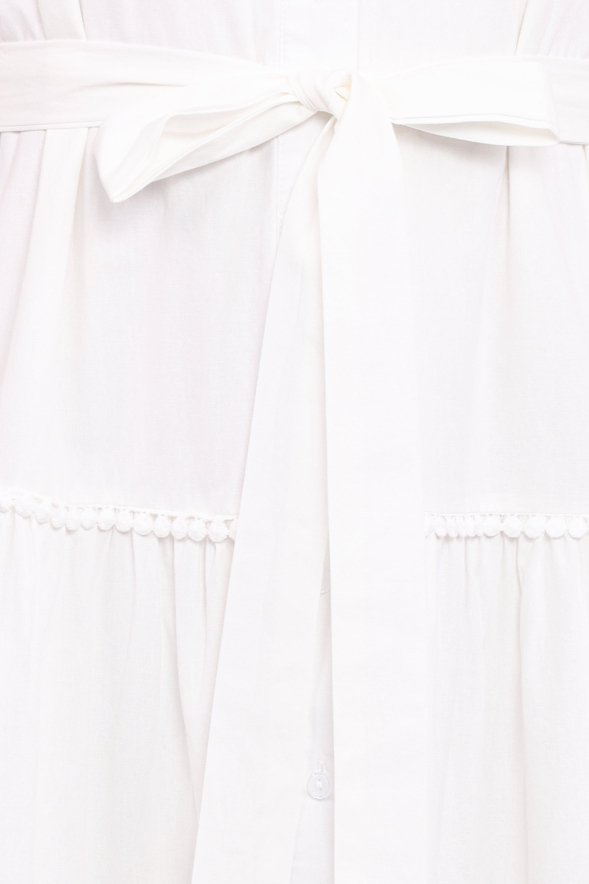 DETAILS Elevate your wardrobe with the effortlessly stylish Louella Maxi Dress in classic white. Designed with a timeless silhouette, this dress features a spread collar and a chic V-neckline that balances elegance and comfort.