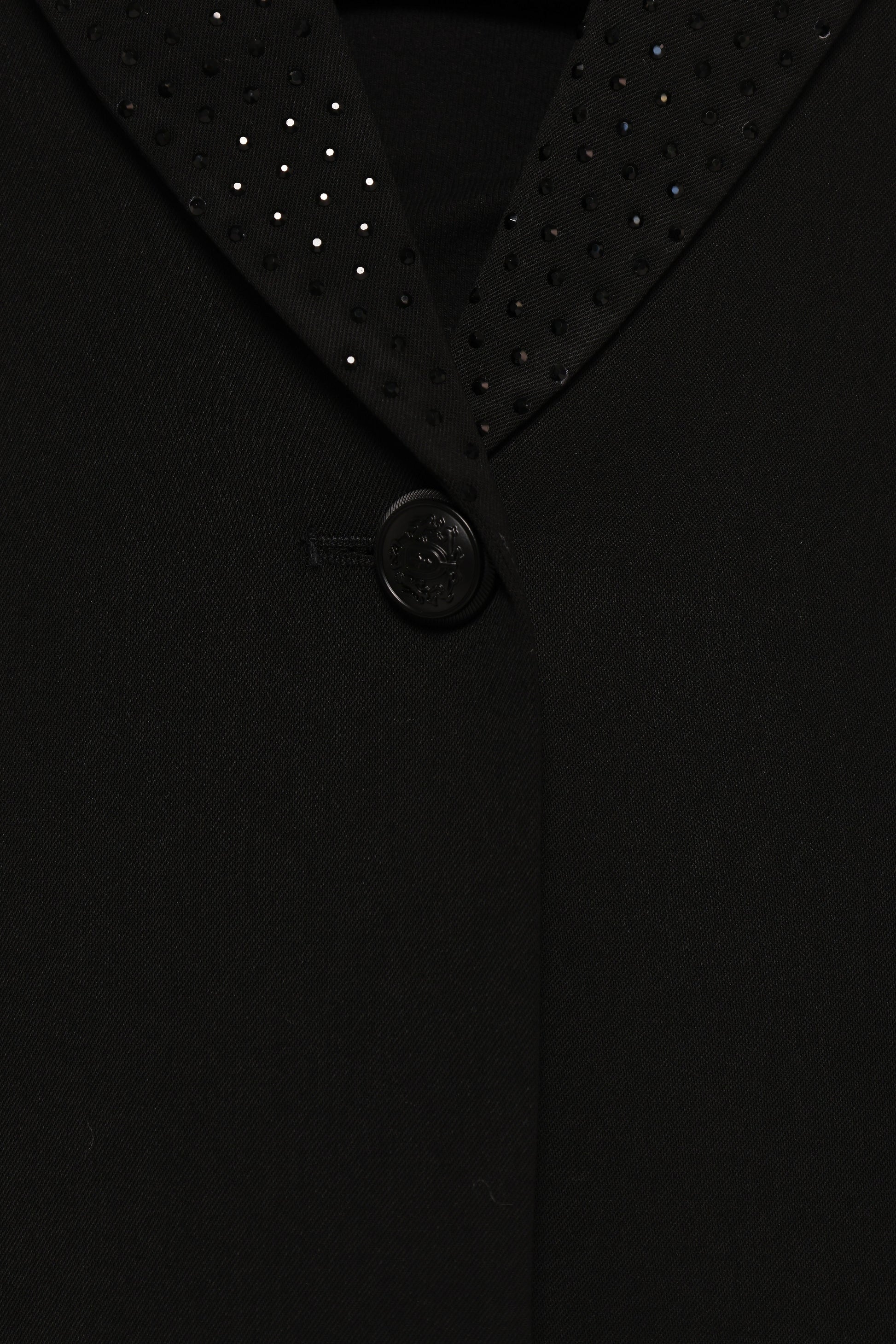 DETAILS Designed for the modern trendsetter, this blazer features elegant notch lapels adorned with shimmering rhinestones, adding a subtle yet eye-catching detail that sets you apart from the crowd.