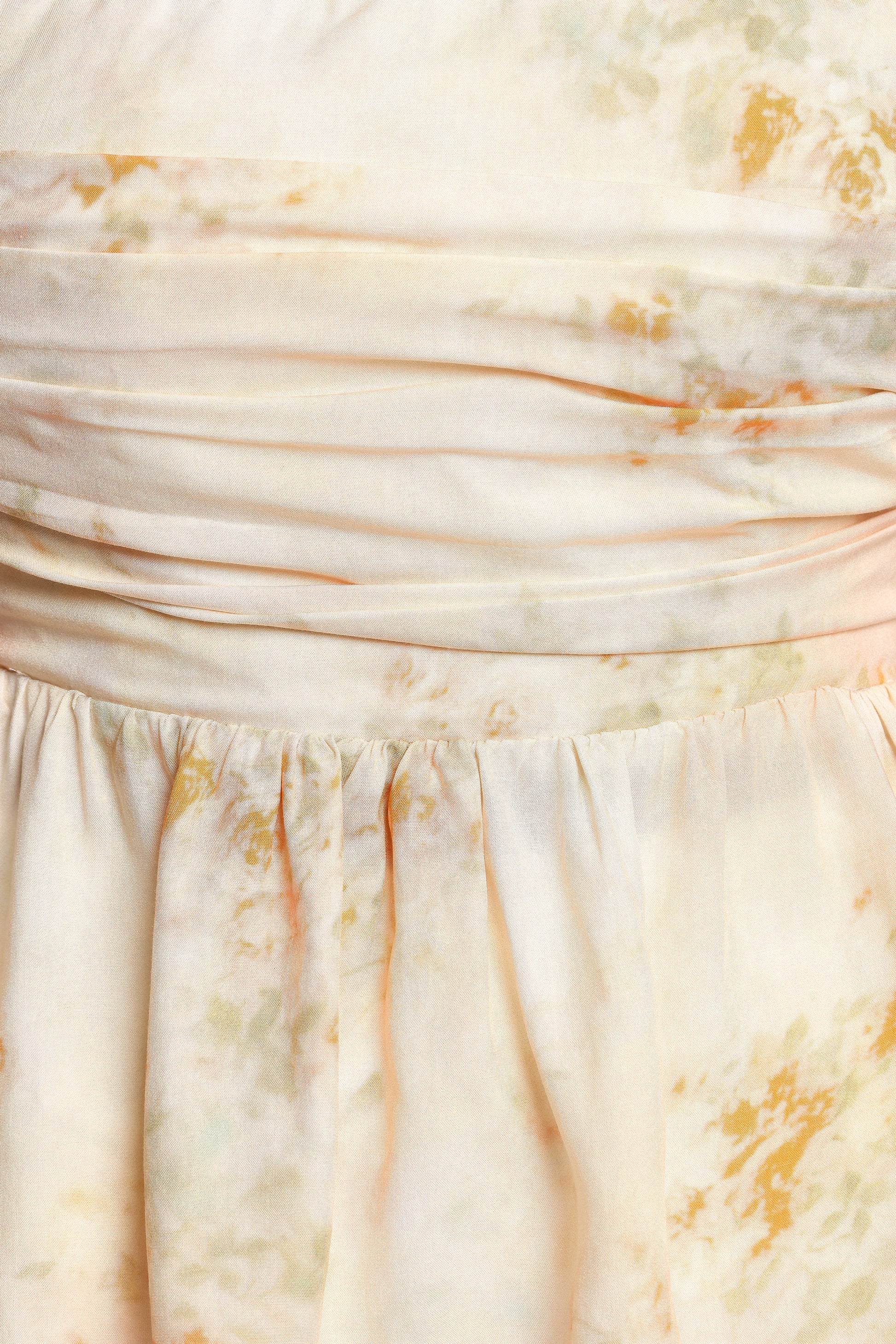 DETAILS Turn heads with the Maia Strapless Top - Floral, a piece designed to bring effortless elegance to your wardrobe. Featuring a strapless silhouette and a sleek straight neckline, this top combines comfort and style with its elasticized shirred back panel for the perfect fit.