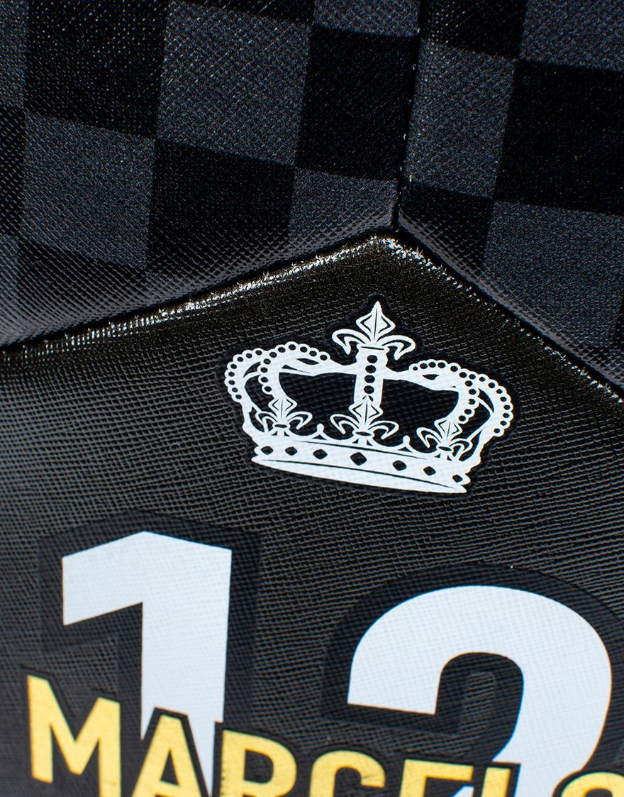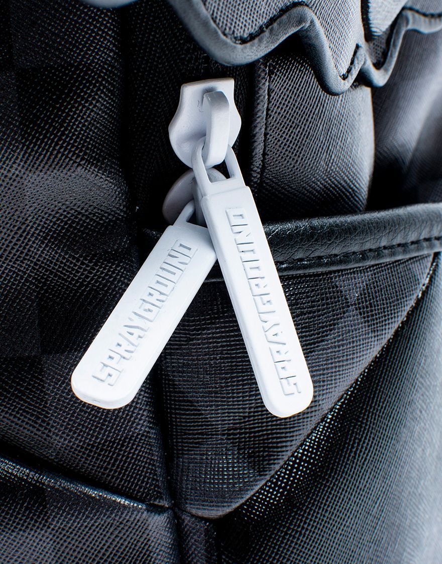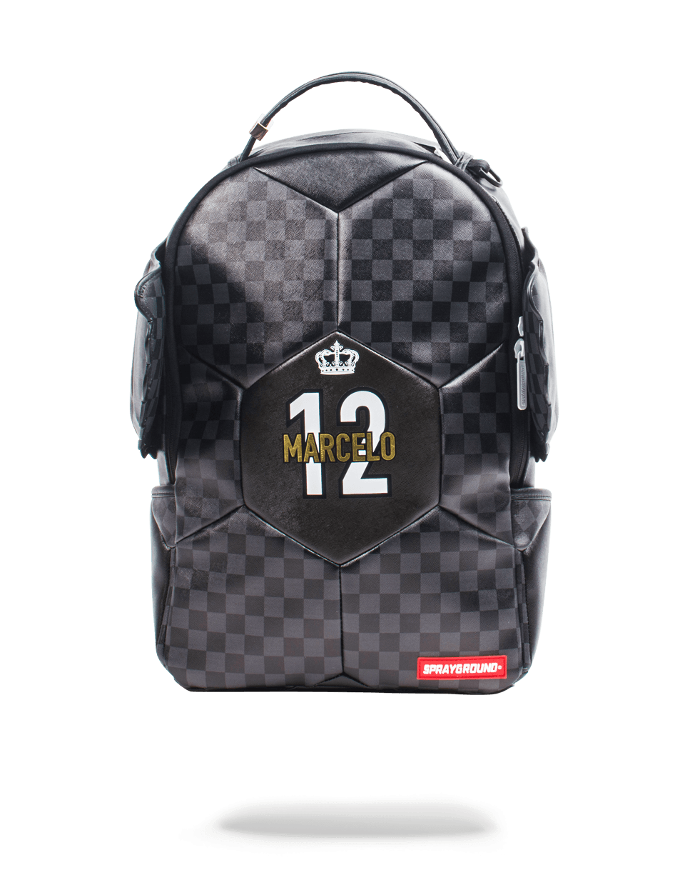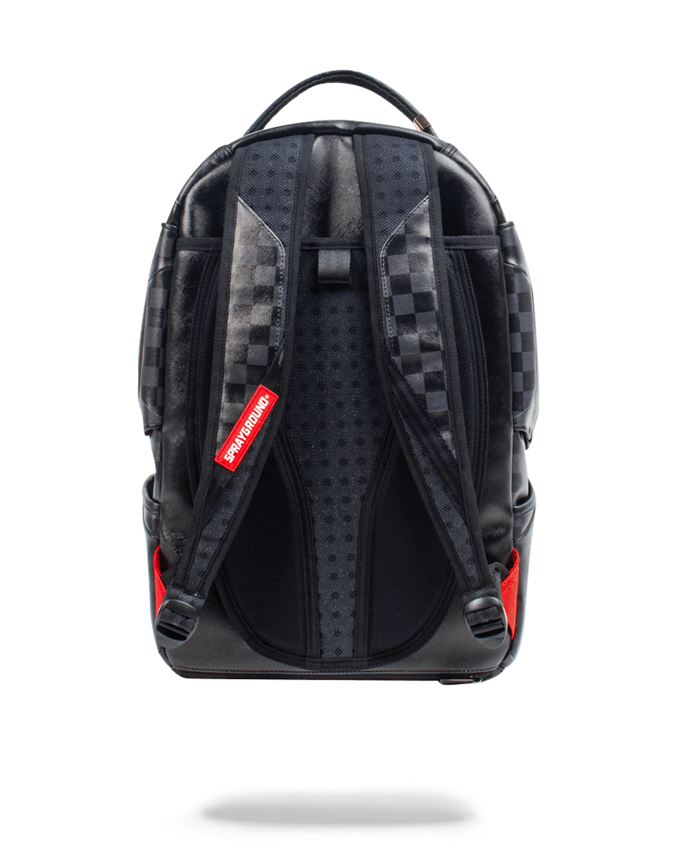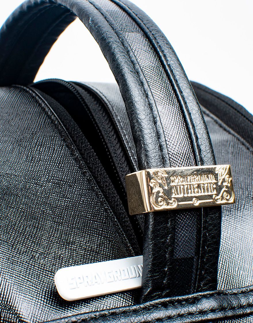 ExteriorDimensions: 18' x 6' x 11.5' ∙ Front zipper pocket ∙ Side pockets ∙ Zippered Stash pocket ∙ Ergonomic mesh back padding ∙ Adjustable Straps for custom sizing ∙ Nylon Zippers with Metal Hardware ∙ Metal 'Sprayground Authentic' badge ∙ Slide through back sleeve connects to Carry on luggage to free your hands
