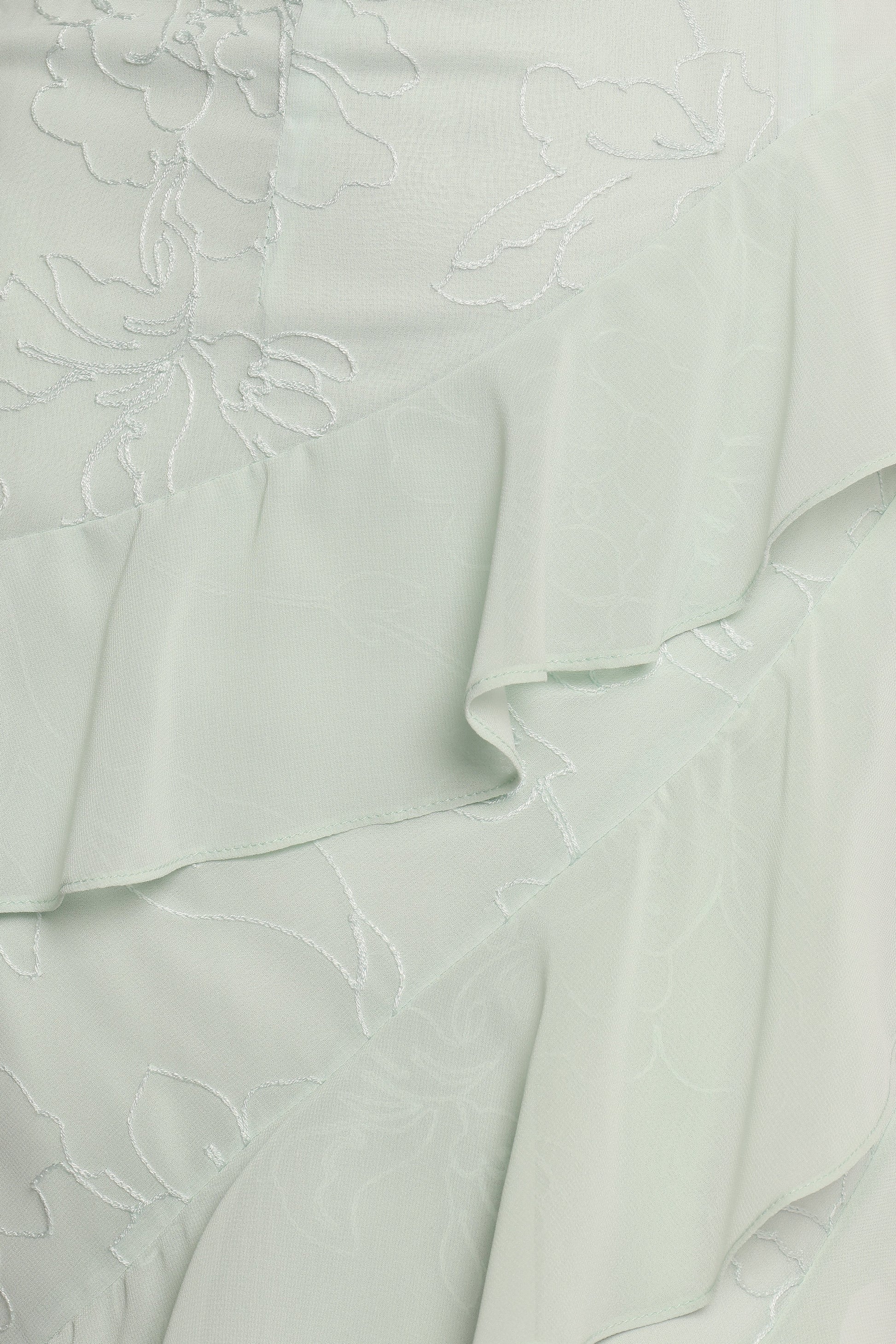 DETAILS Elevate your wardrobe with the Marion Maxi Dress in Sage Green, a perfect blend of elegance and charm. Featuring a chic one-shoulder design, delicate ruffle detailing, and a tiered silhouette, this dress flows effortlessly with every step.