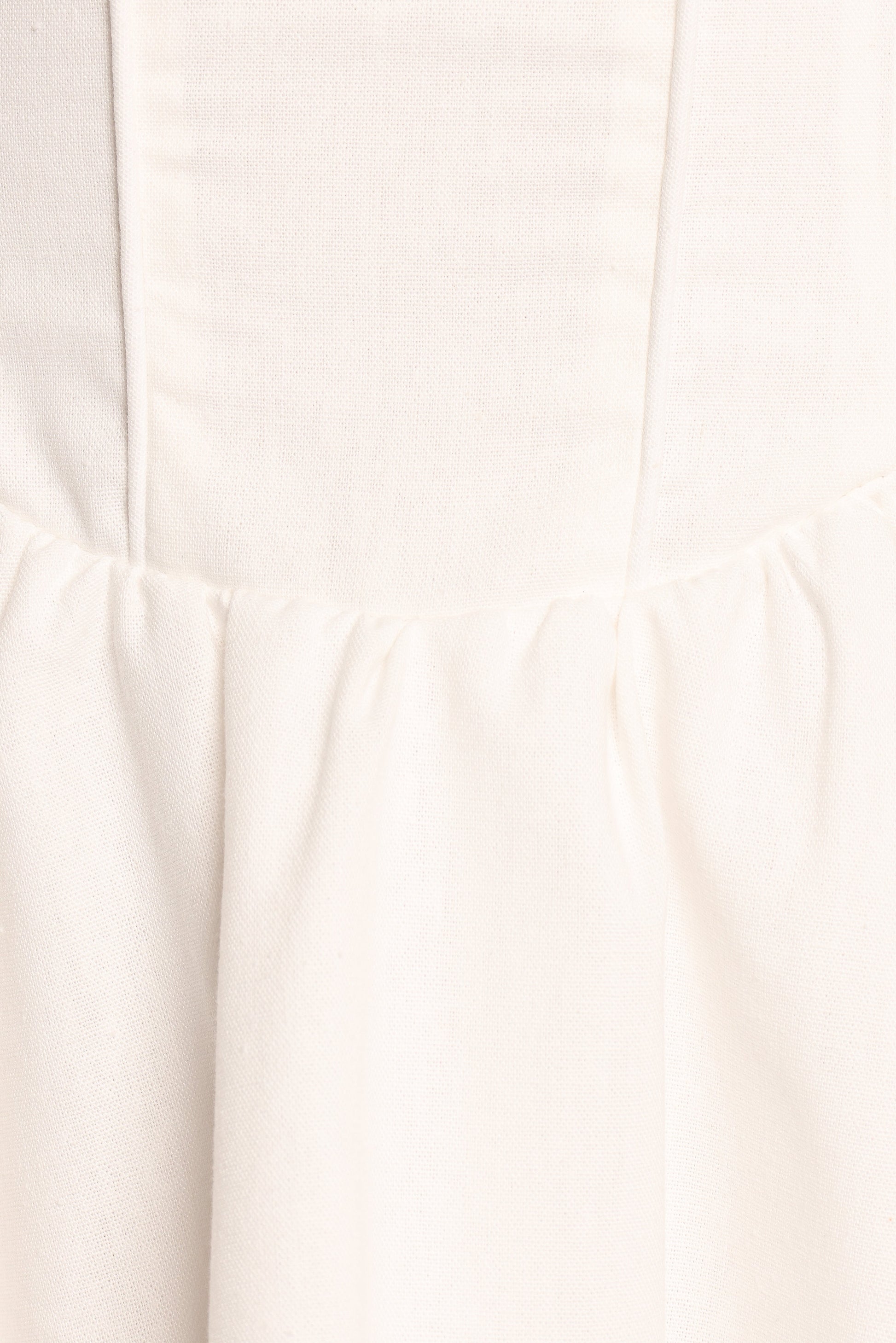 DETAILS Tailored for those who love to make a statement, its mini length captures a sophisticated vibe, effortlessly highlighting your legs. The square neckline and sleeveless design exude contemporary style, while non-adjustable straps ensure a snug fit.