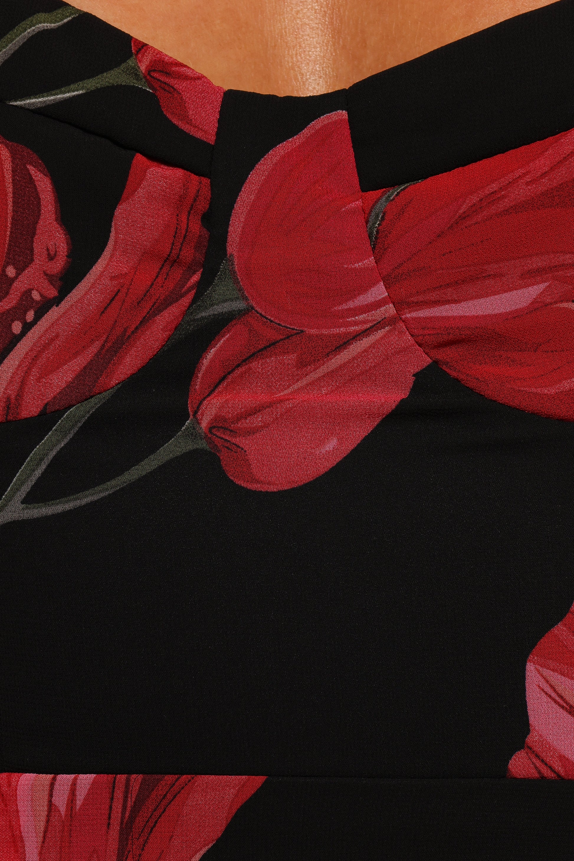 DETAILS Are you looking for the perfect midi dress to make a statement? Look no further than this floral print midi beauty! Featuring a sweetheart neckline, thin tie close straps and back shirred panel for extra comfort, this dress is designed with your smaller bust in mind.