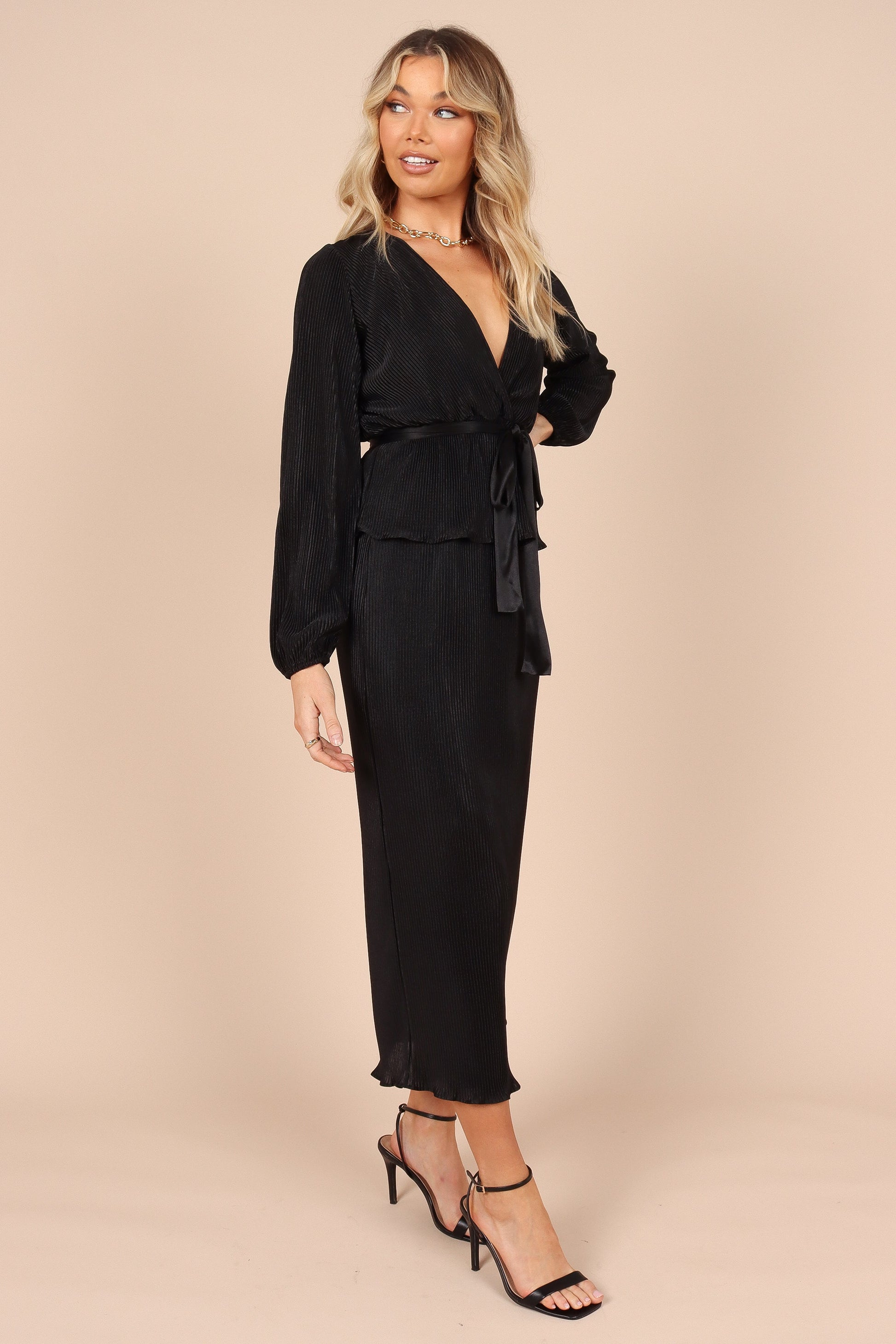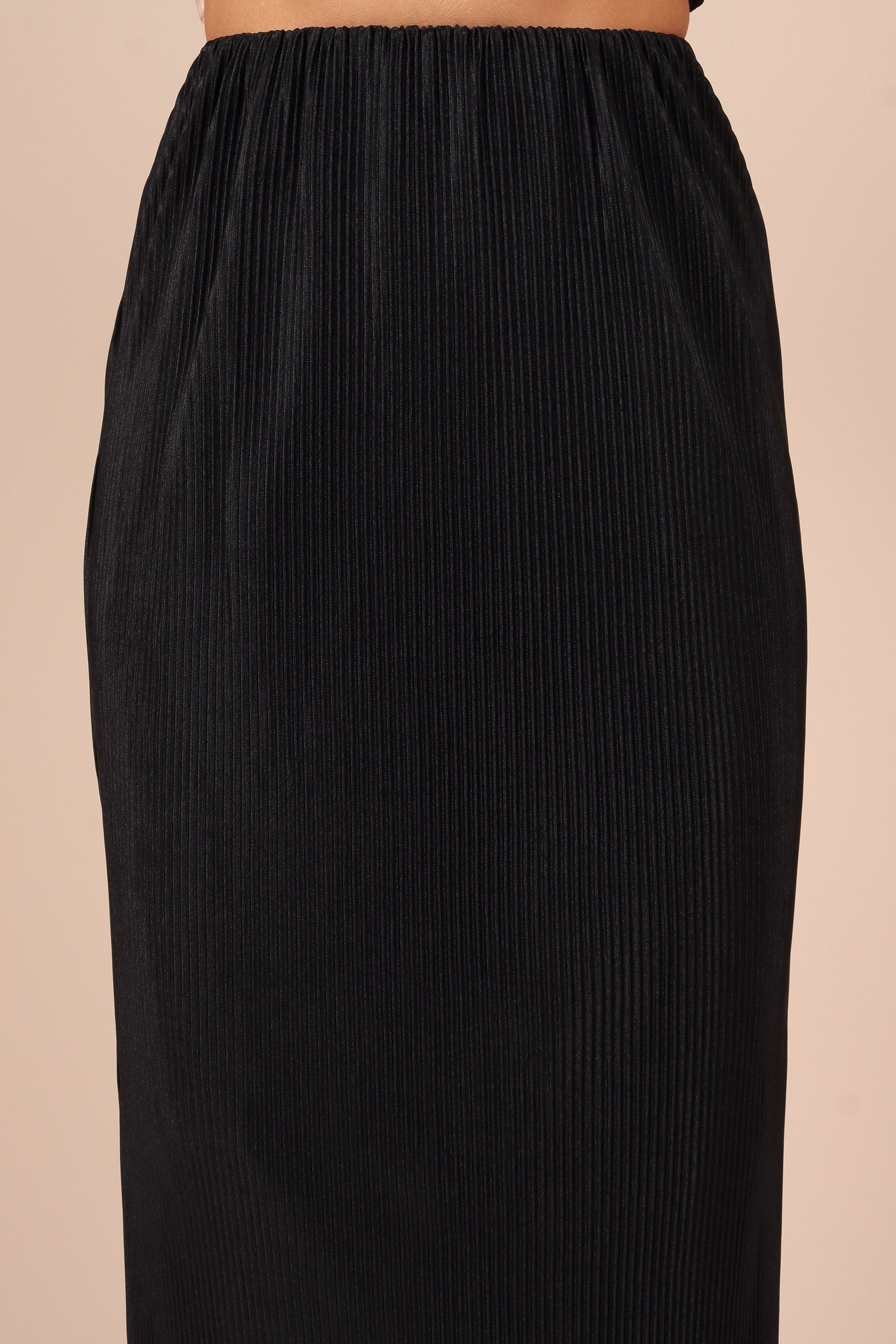 DETAILS This midi length skirt is perfect for all your wardrobe needs. It has an elasticised waistband, creating a flattering fit whatever the occasion. Crafted from plisse material with a subtle, but striking satin sheen finish; this midi length skirt is versatile and ready to be dressed up or down!