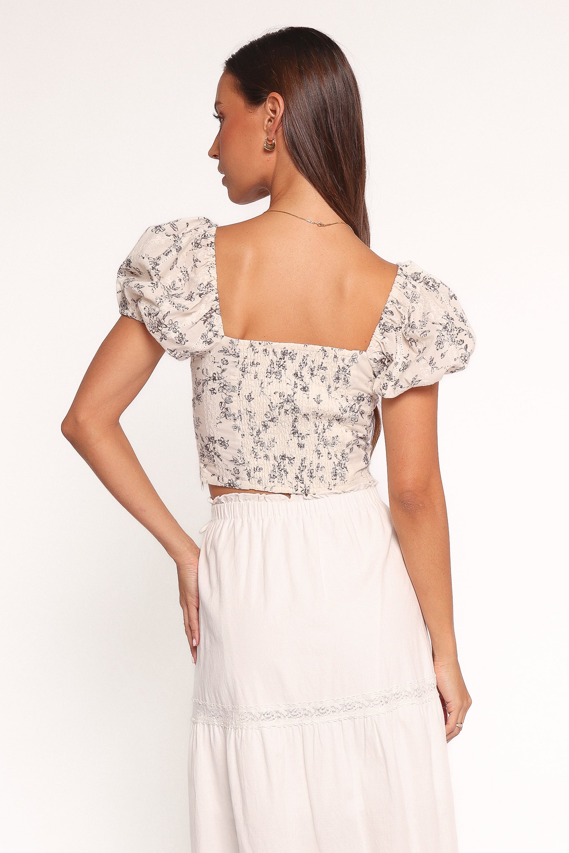 DETAILS Elevate your wardrobe with the Monira Top in Brown Ivory, a perfect blend of elegance and versatility. Designed with a cropped length and a flattering square neckline, this top is ideal for pairing with high-waisted jeans or a flowy midi skirt.