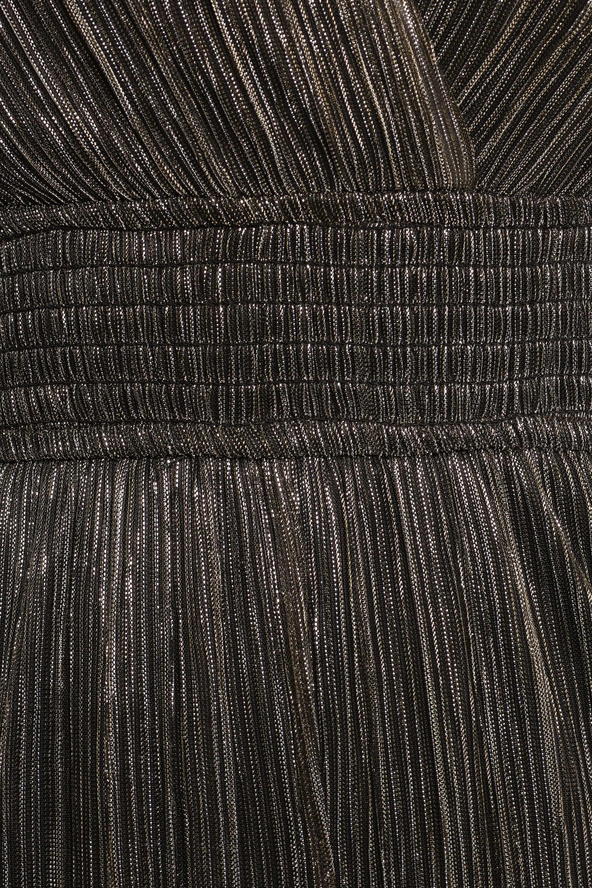 DETAILS this eye-catching piece features a sophisticated v overlay neckline, beautifully complemented by long sleeves with elasticised cuffs that create a graceful silhouette. Designed with a shirred elasticised waistband, this jumpsuit ensures a flattering fit that accentuates your natural curves.