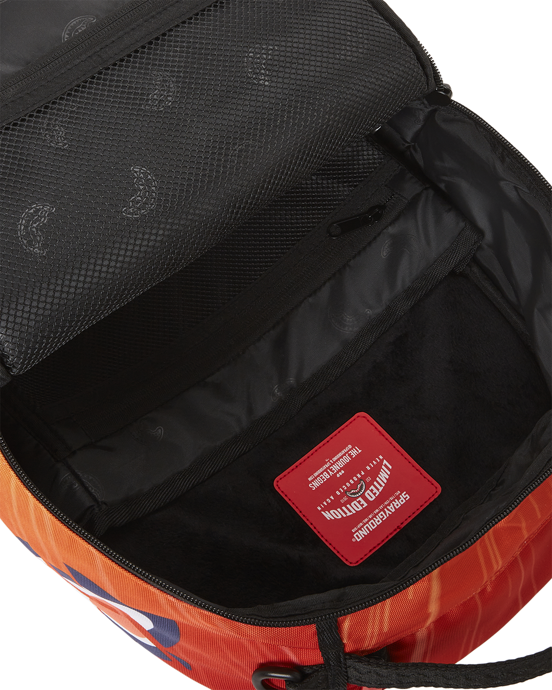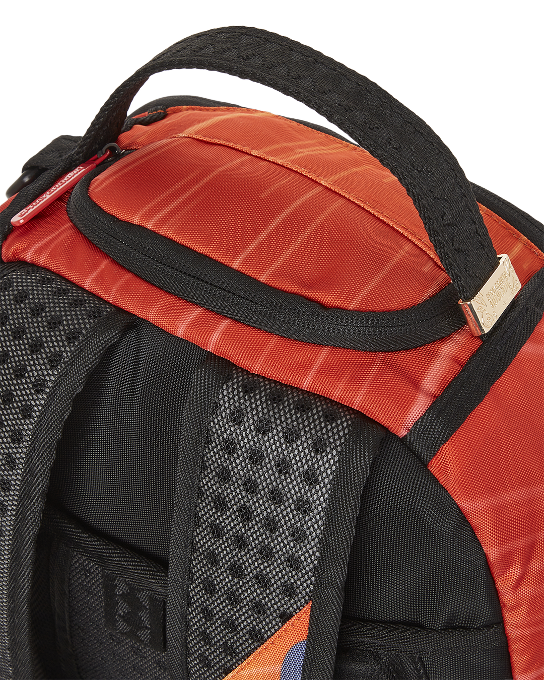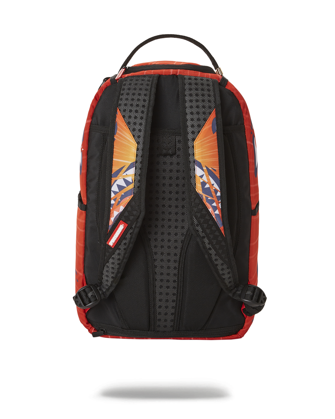 ExteriorDimensions: 18' x 6' x 11.5' • Front zipper pocket • Side pockets • Zippered Stash pocket • Separate velour sunglass compartment • Ergonomic mesh back padding • Adjustable Straps for custom sizing • Green zippers with metal hardware • Metal 'Sprayground Authentic' badge • Slide through back sleeve connects to carry on luggage to free your hands