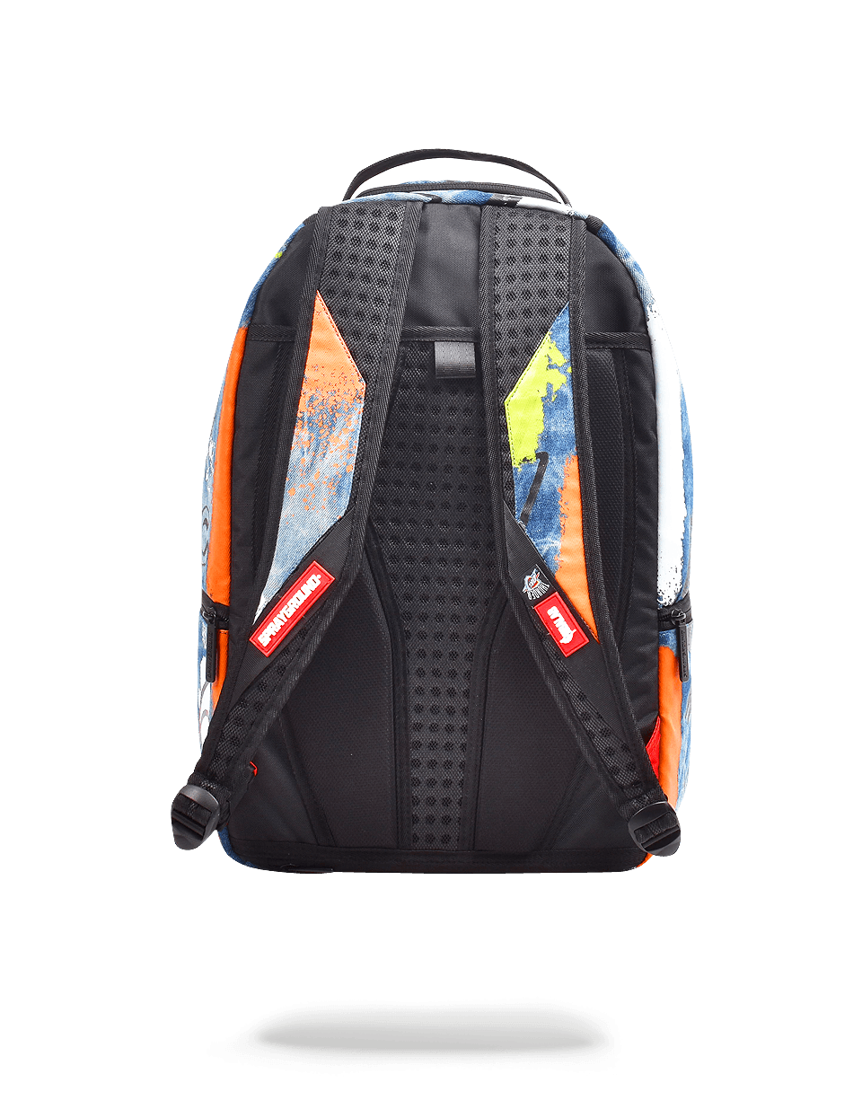 ExteriorDimensions: 18' x 6' x 11.5' ∙ Front zipper pocket ∙ Side pockets ∙ Zippered Stash pocket ∙ Ergonomic mesh back padding ∙ Adjustable Straps for custom sizing ∙ Nylon Zippers with Metal Hardware ∙ Metal 'Sprayground Authentic' badge ∙ Slide through back sleeve connects to Carry on luggage to free your hands