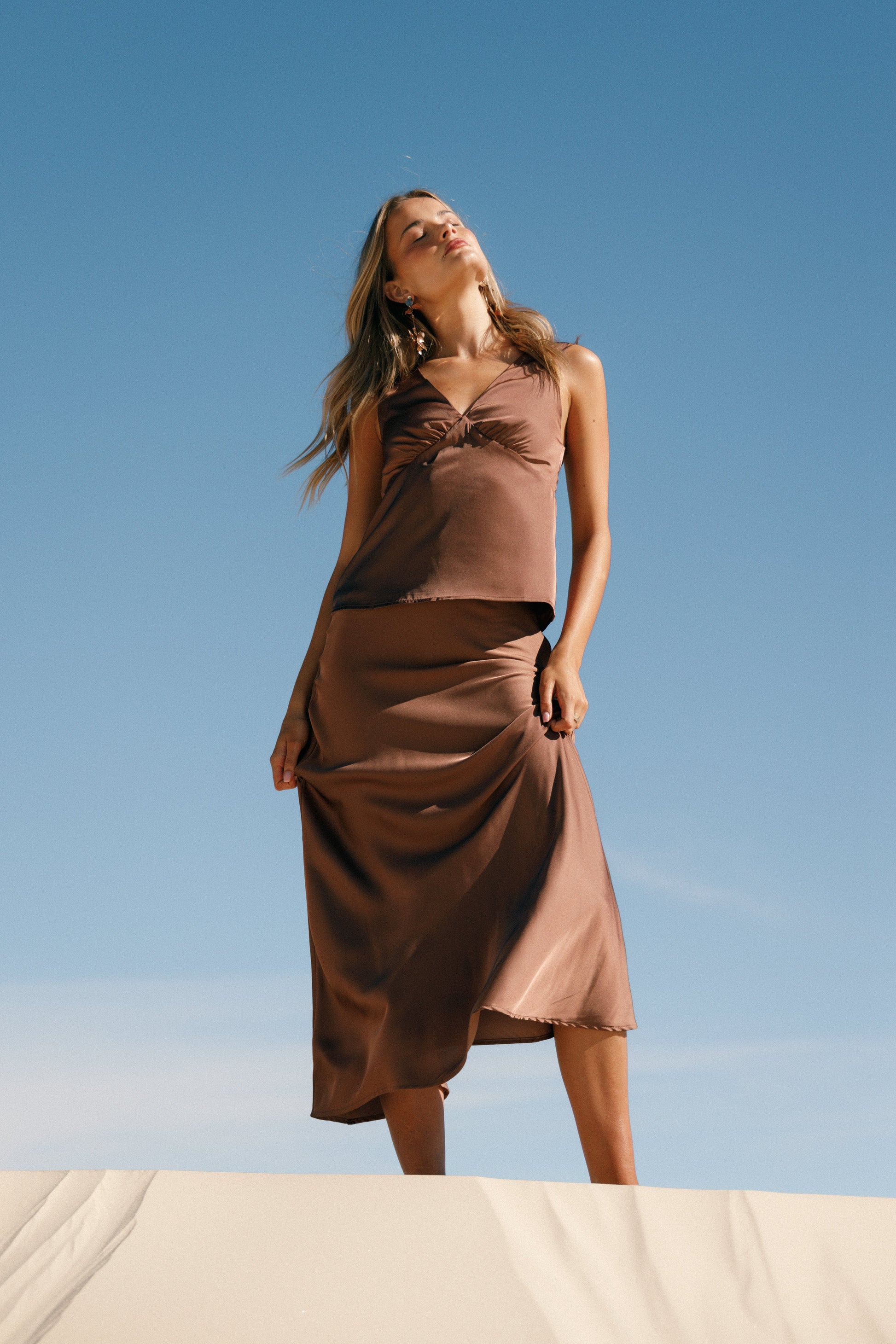 DETAILS Introducing our gorgeous midi skirt to your wardrobe, perfect for adding a touch of glamour to any look. Featuring a high waisted style and side invisible zip with a promise of comfort. The satin sheen finish gives it an extra touch of fun.