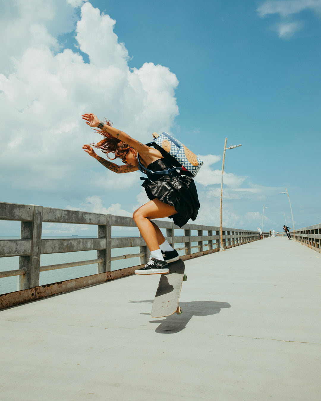 Dimensions: 18' x 6' x 11.5' • Front zipper pocket • Side pockets • Zippered Stash pocket • Separate velour sunglass compartment • Ergonomic mesh back padding • Adjustable Straps for custom sizing • Gold zippers with metal hardware • Metal 'Sprayground Authentic' badge • Slide through back sleeve connects to carry-on luggage to free your hands