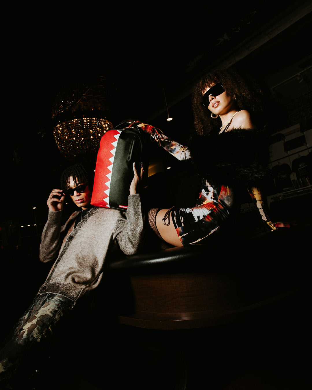 Dimensions: 18' x 6' x 11.5' • Front zipper pocket • Side pockets • Zippered Stash pocket • Separate velour sunglass compartment • Ergonomic mesh back padding • Adjustable Straps for custom sizing • Gold zippers with metal hardware • Metal 'Sprayground Authentic' badge • Slide through back sleeve connects to carry-on luggage to free your hands
