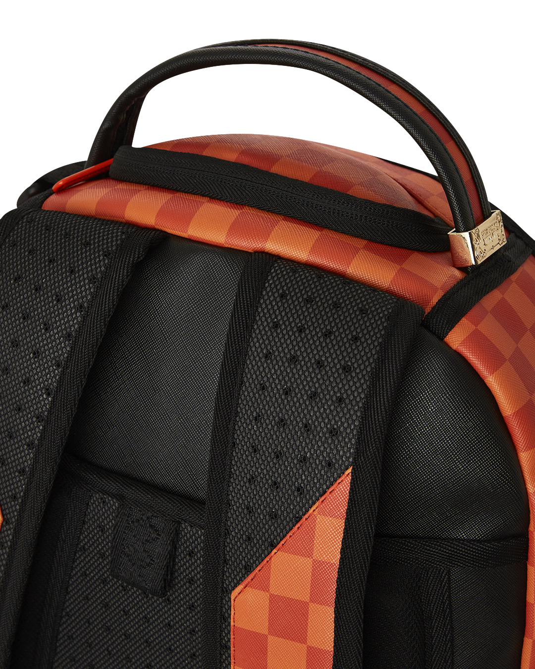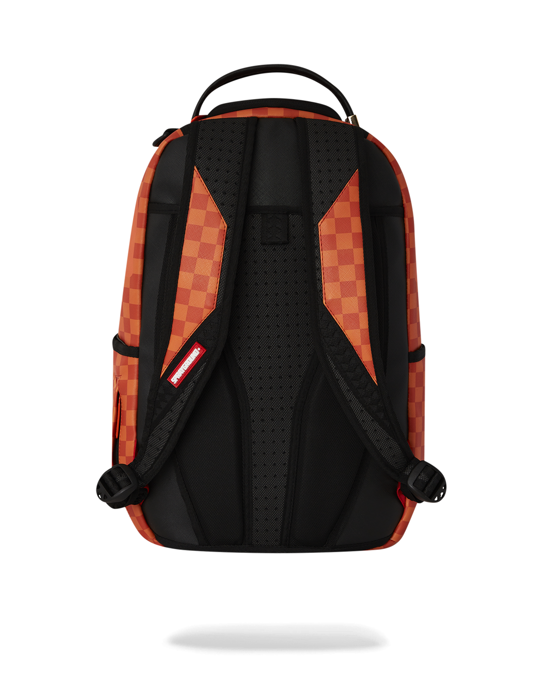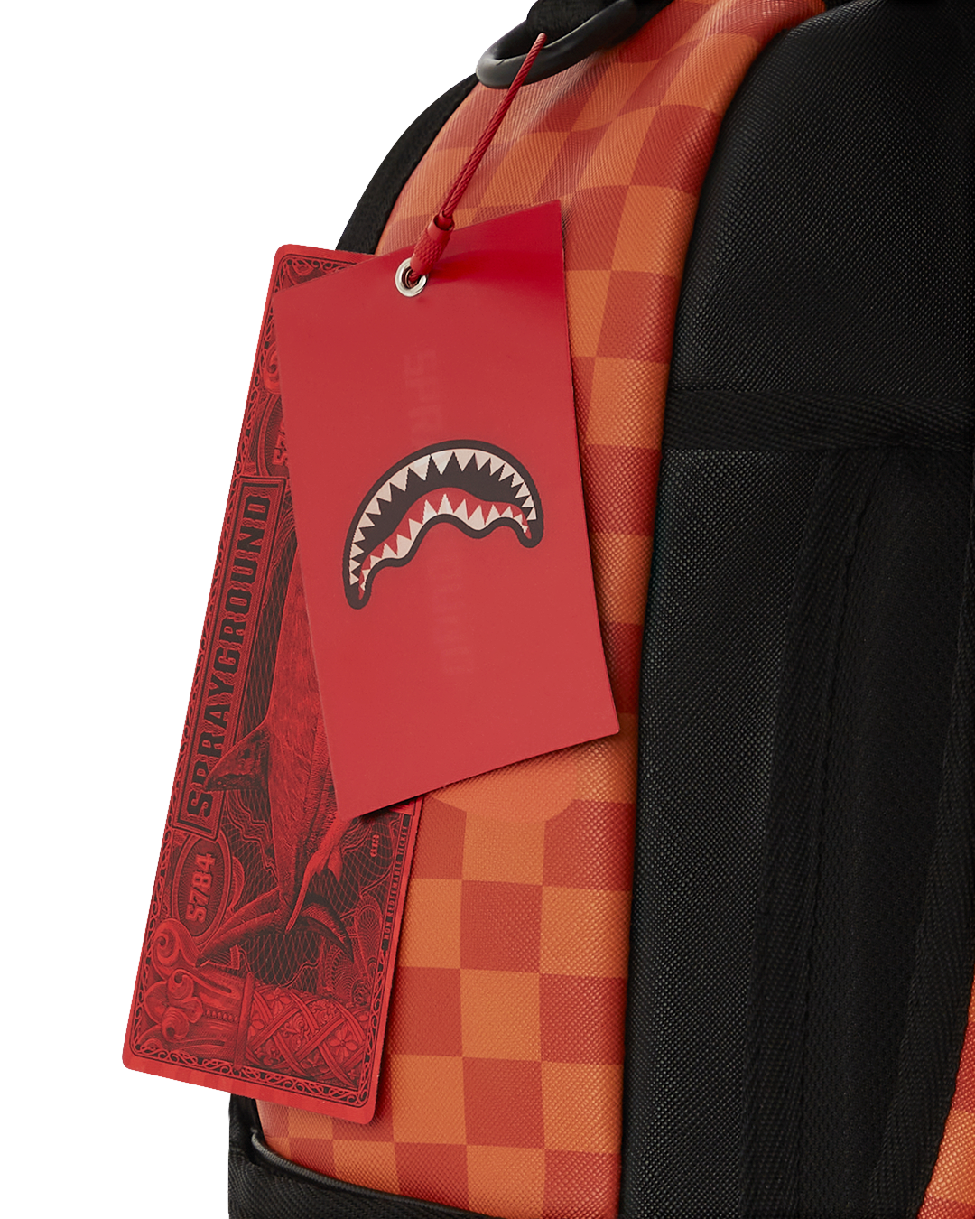 Dimensions: 18' x 6' x 11.5' • Front zipper pocket • Side pockets • Zippered Stash pocket • Separate velour sunglass compartment • Ergonomic mesh back padding • Adjustable Straps for custom sizing • Gold zippers with metal hardware • Metal 'Sprayground Authentic' badge • Slide through back sleeve connects to carry-on luggage to free your hands
