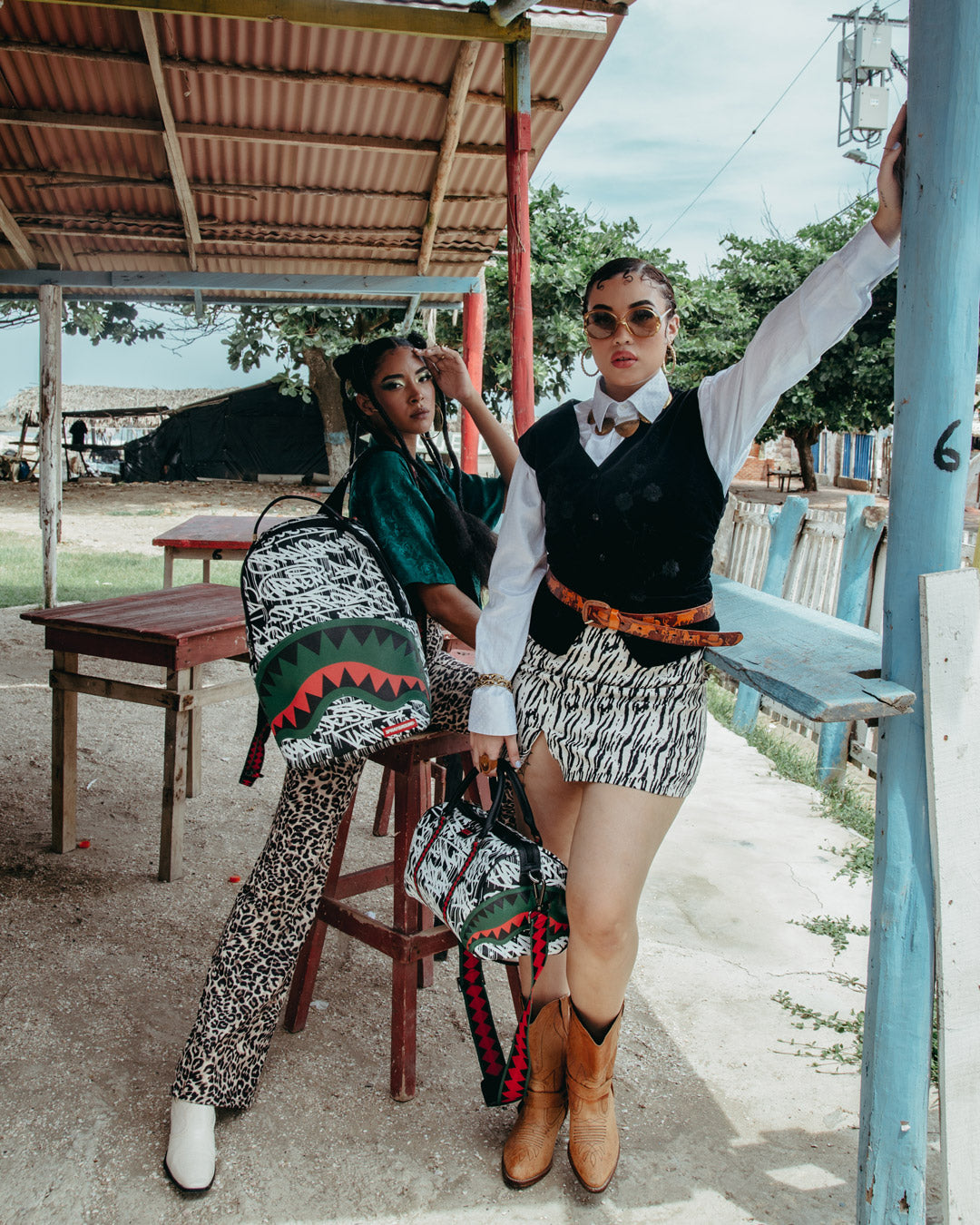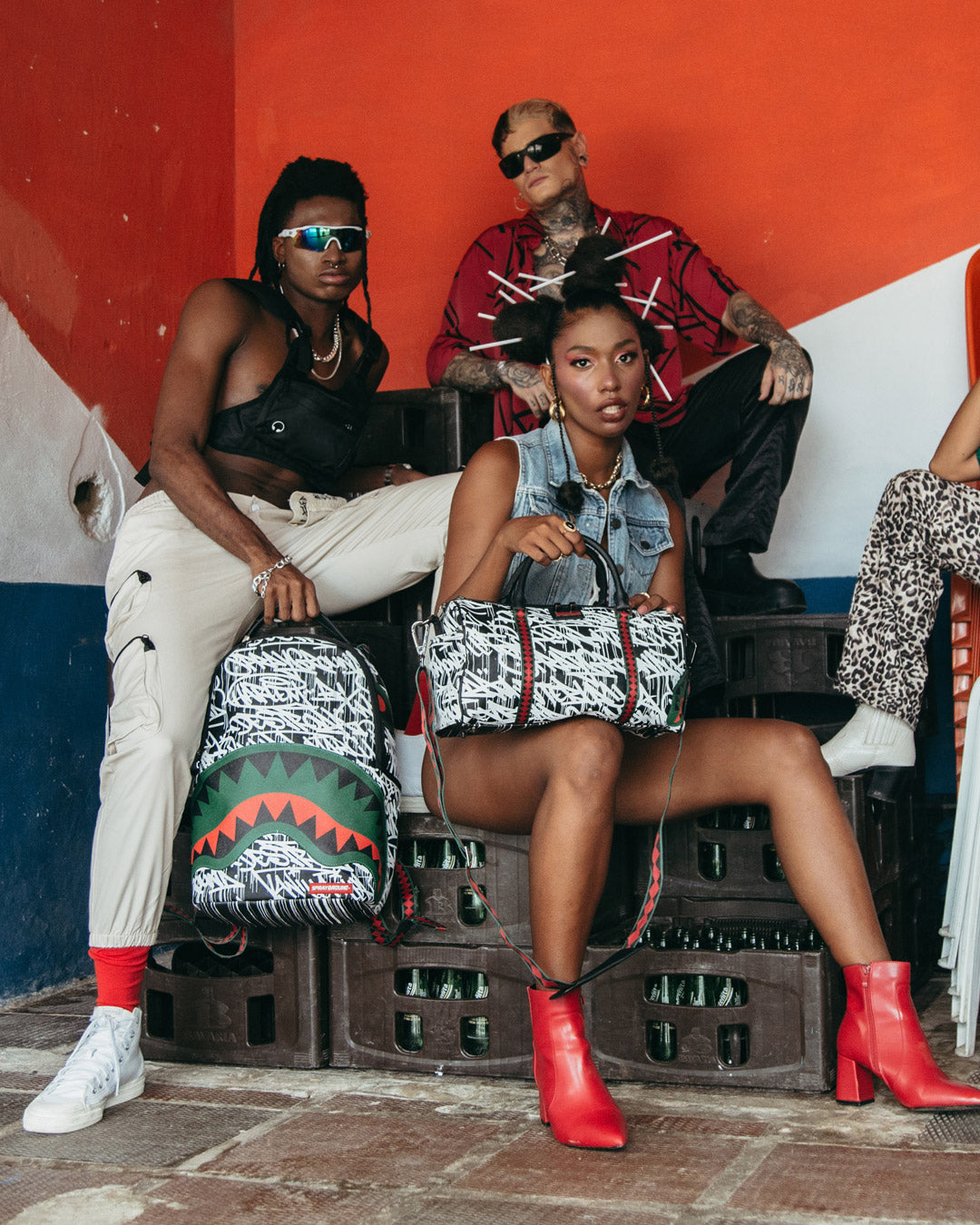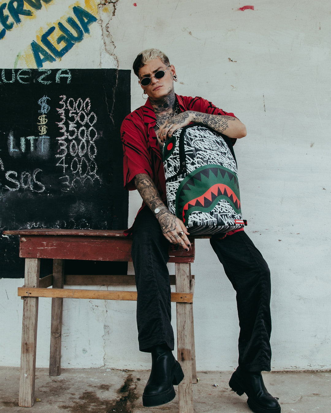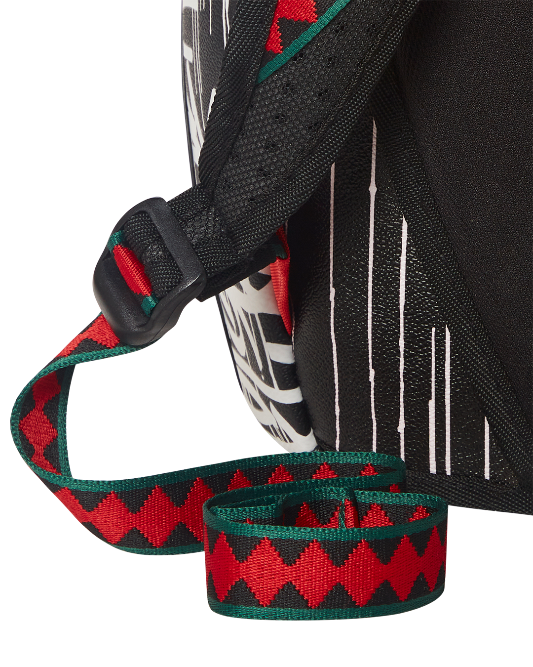 Dimensions: 18' x 6' x 11.5' • Front zipper pocket • Side pockets • Zippered Stash pocket • Separate velour sunglass compartment • Ergonomic mesh back padding • Adjustable Straps for custom sizing • Gold zippers with metal hardware • Metal 'Sprayground Authentic' badge • Slide through back sleeve connects to carry-on luggage to free your hands