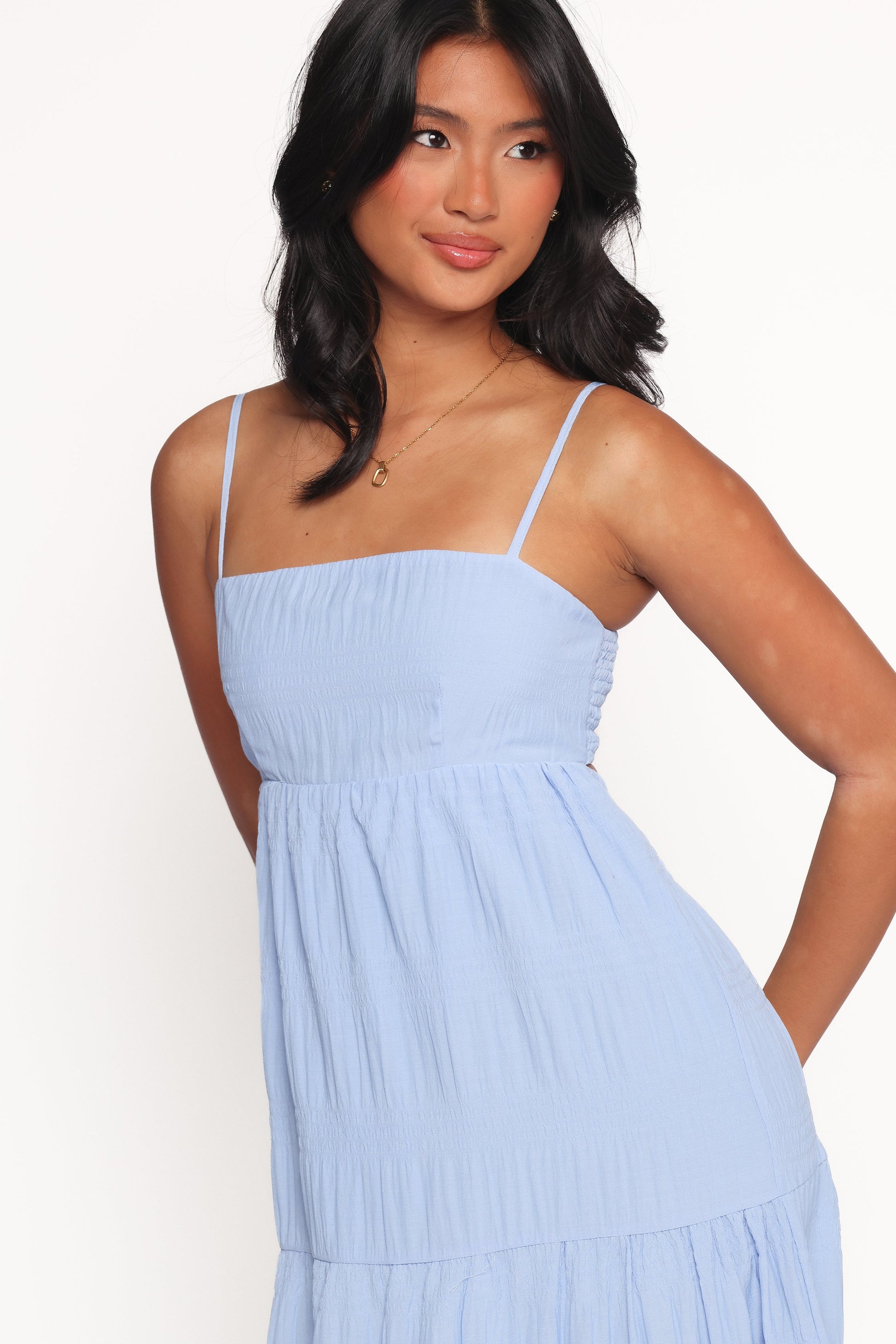 DETAILS Elevate your wardrobe with the Nina Maxi Dress in Dusty Blue, a perfect blend of elegance and modern design. This maxi-length dress features a timeless square neckline and thin adjustable straps, ensuring a customized fit that's as comfortable as it is stylish.