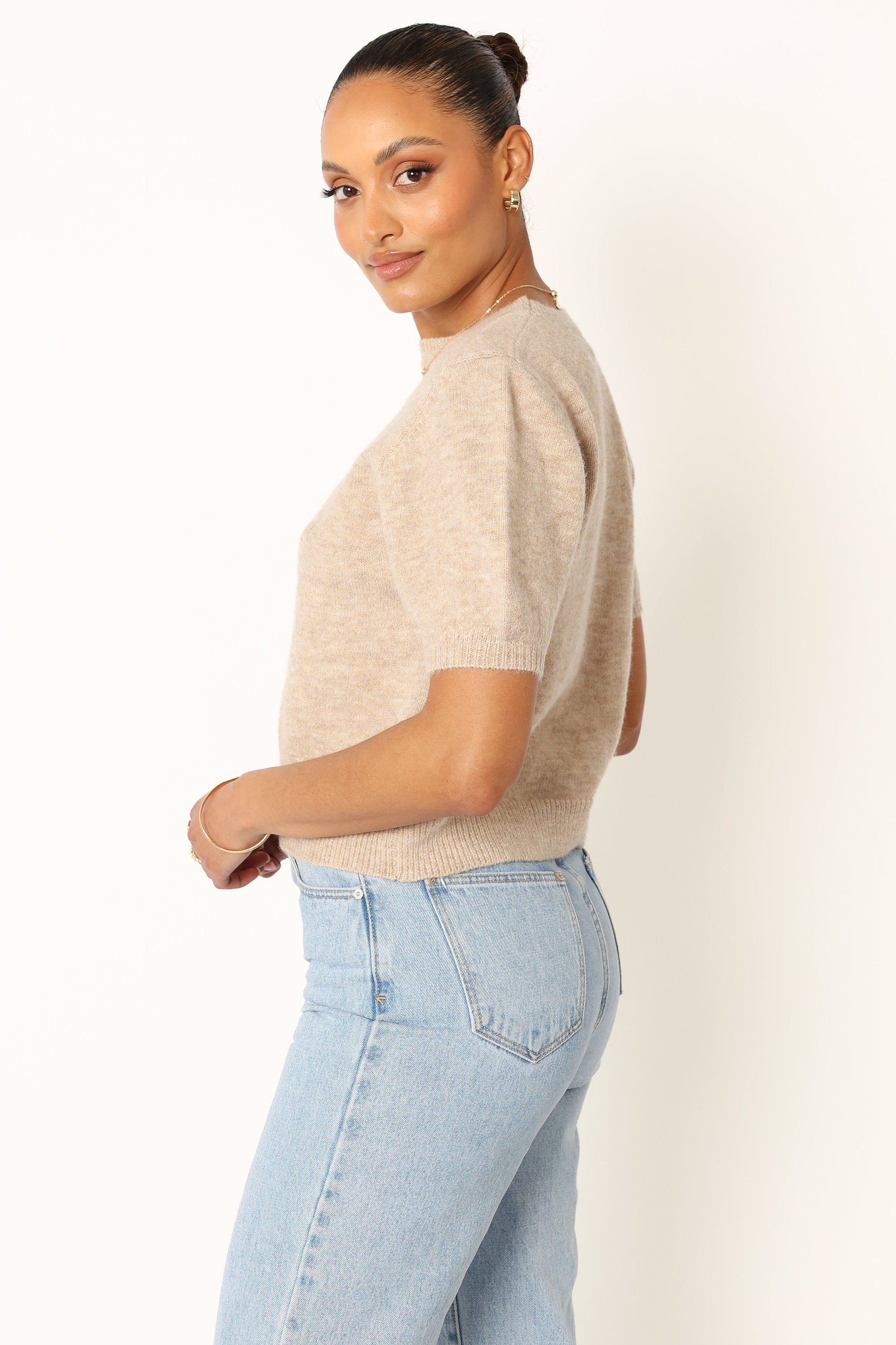 DETAILS This season, take your wardrobe to the next level with this cozy knit sweater. Crafted from quality fabrics for softness and comfort, it features a cropped length, round neckline, short puff sleeves with ribbed cuffs, and ribbed hemline. With its feminine feel and effortless style, you'll be sure to turn heads when wearing this piece!