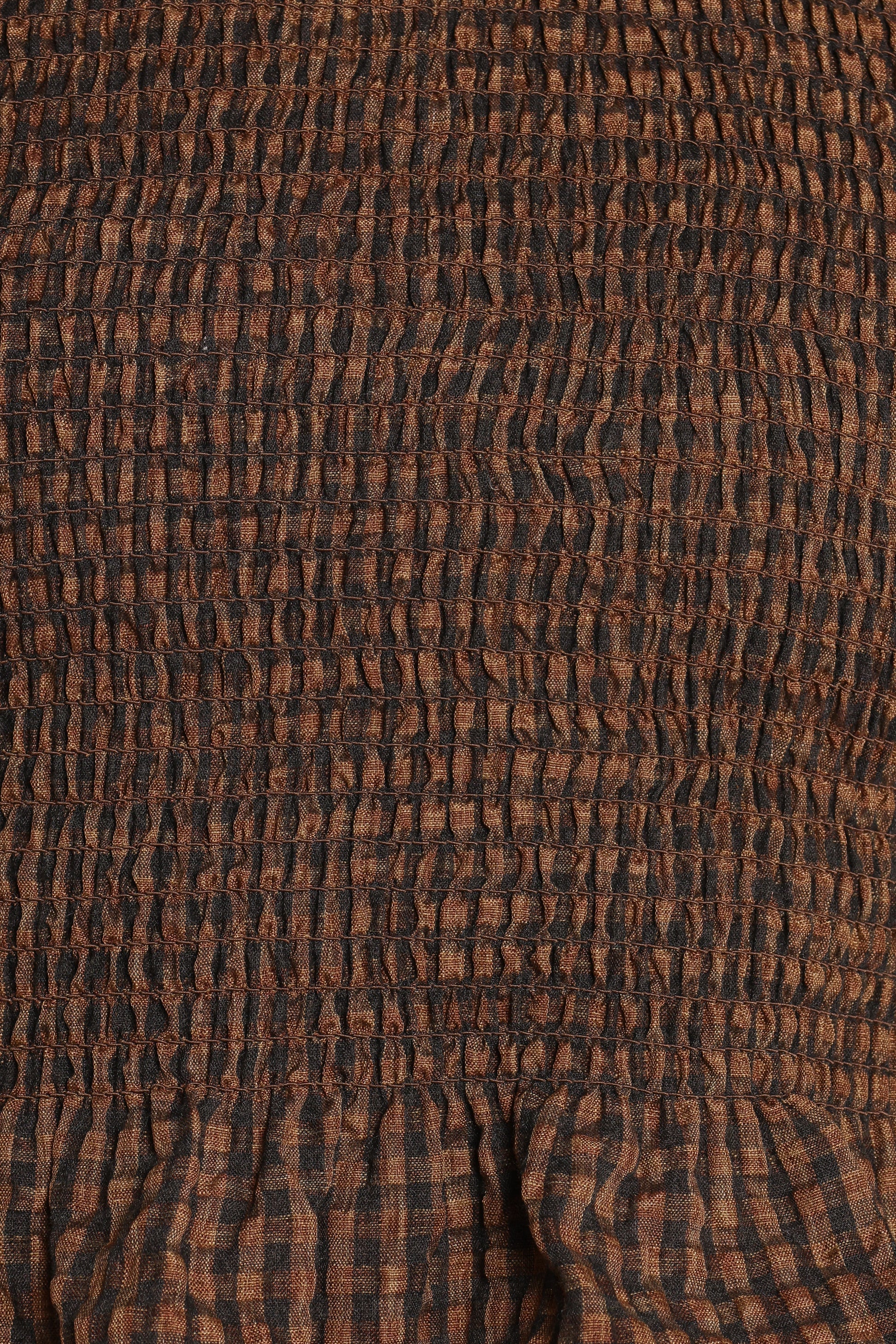 | DETAILS The Nora Long Sleeve Top - Check is your new wardrobe staple that effortlessly combines style and comfort. This cropped-length top features a chic high neckline and long, elasticized sleeves that lend just the right amount of drama while ensuring a perfect fit.