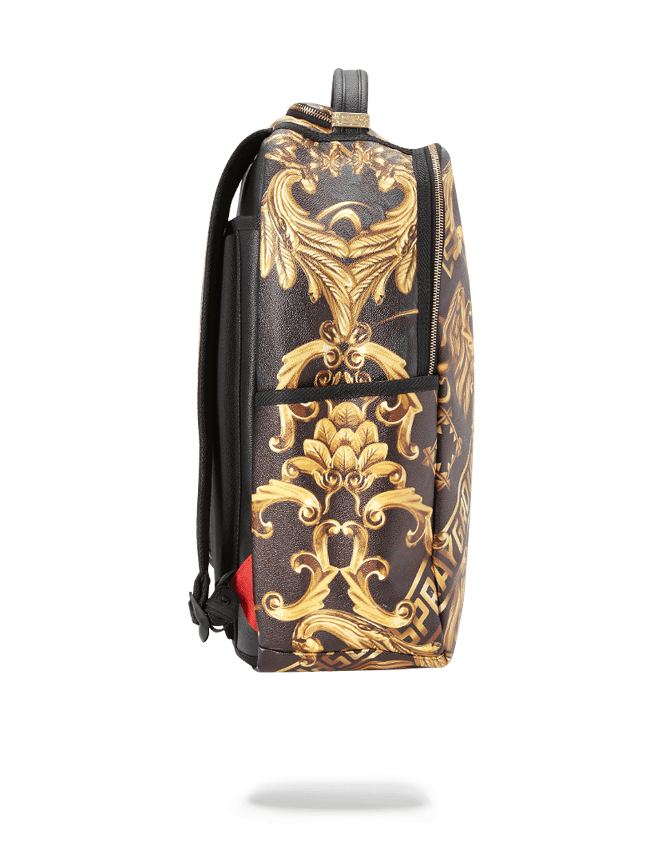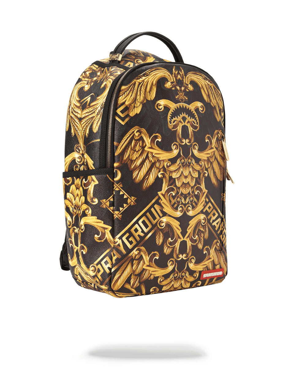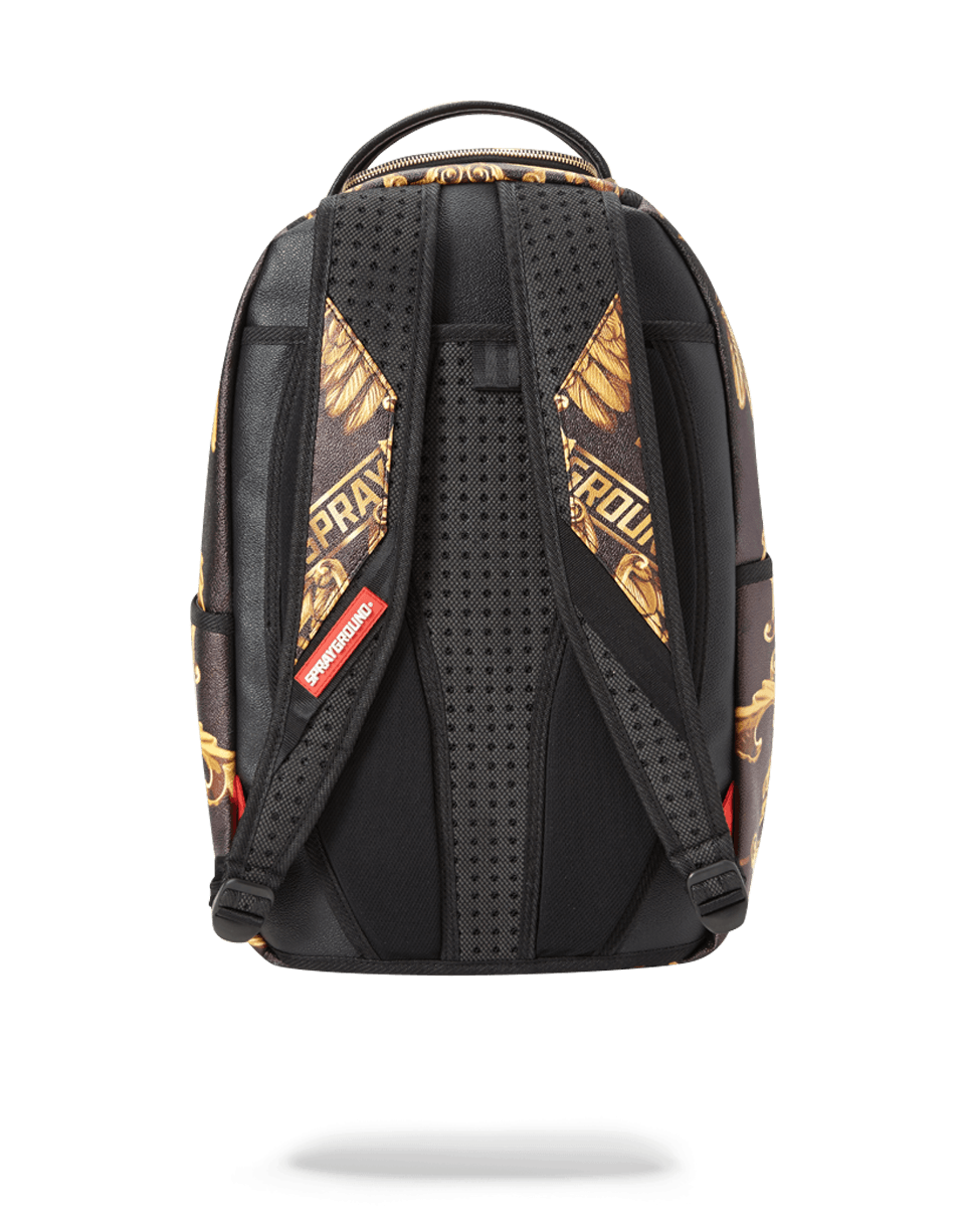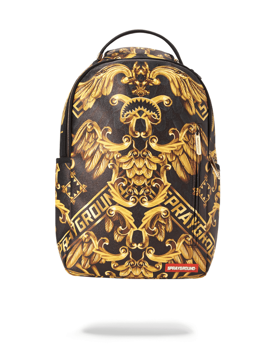 ExteriorDimensions: 18' x 6' x 11.5' ∙ Front zipper pocket ∙ Side pockets ∙ Zippered Stash pocket ∙ Ergonomic mesh back padding ∙ Adjustable Straps for custom sizing ∙ Nylon Zippers with Metal Hardware ∙ Metal 'Sprayground Authentic' badge ∙ Slide through back sleeve connects to Carry on luggage to free your hands