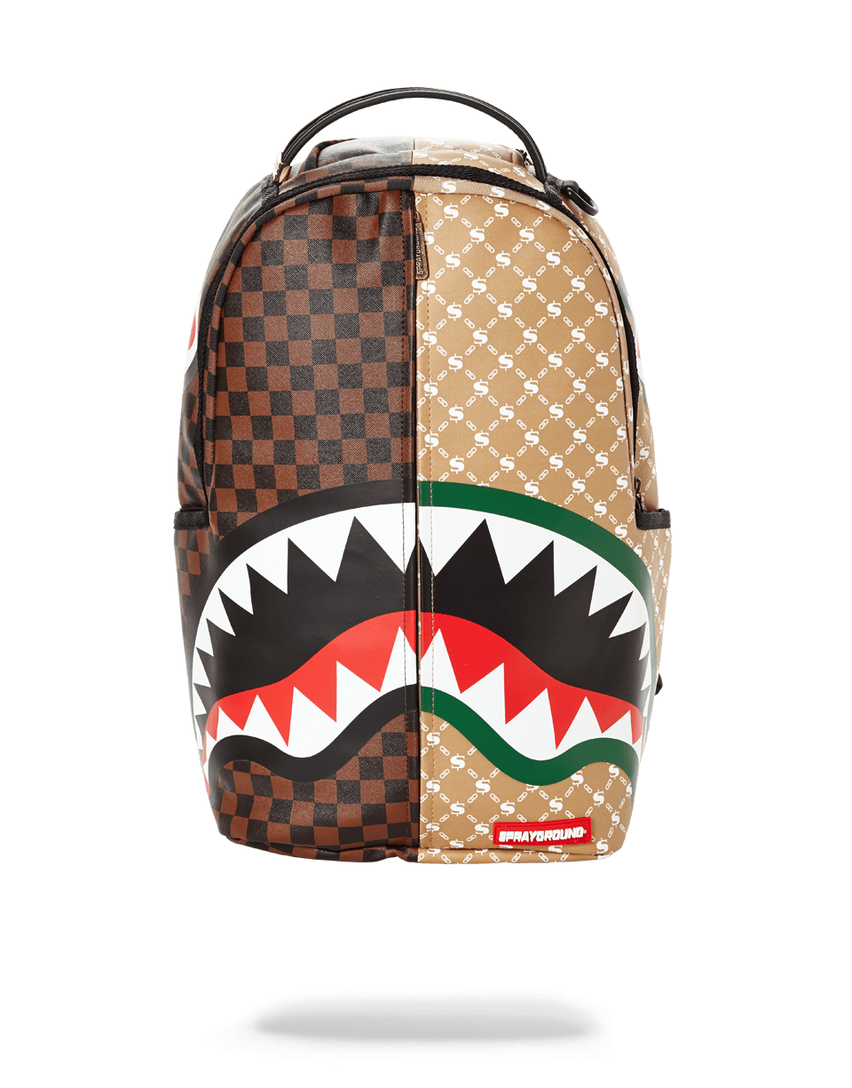 ExteriorDimensions: 18' x 6' x 11.5' ∙ Front zipper pocket ∙ Side pockets ∙ Zippered Stash pocket ∙ Ergonomic mesh back padding ∙ Adjustable Straps for custom sizing ∙ Nylon Zippers with Metal Hardware ∙ Metal 'Sprayground Authentic' badge ∙ Slide through back sleeve connects to Carry on luggage to free your hands