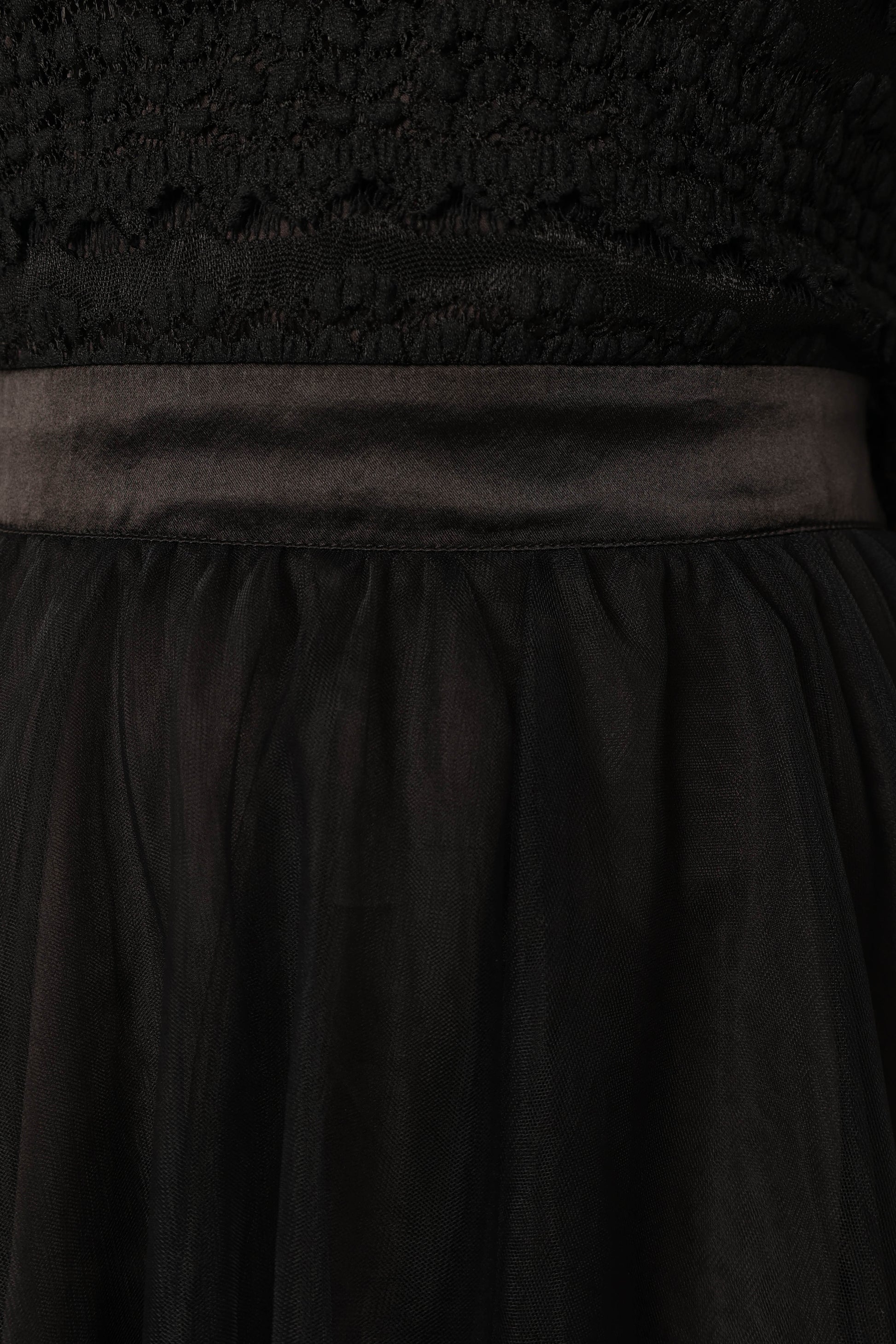 DETAILS Introducing the perfect midi dress for your next event! Featuring a round neckline, long sleeves, and a lace bodice - this dress will have you feeling elegant yet modern.
