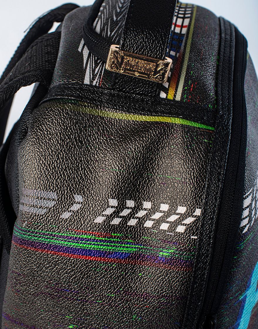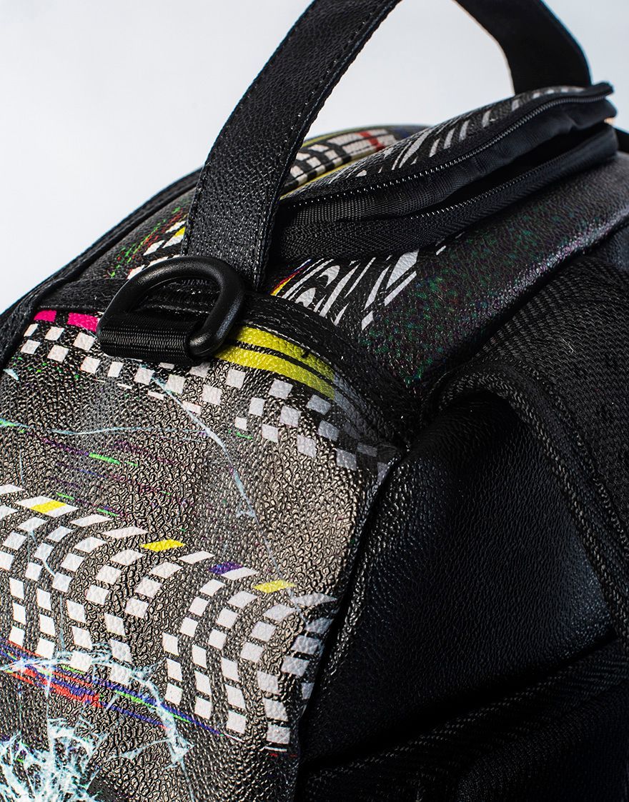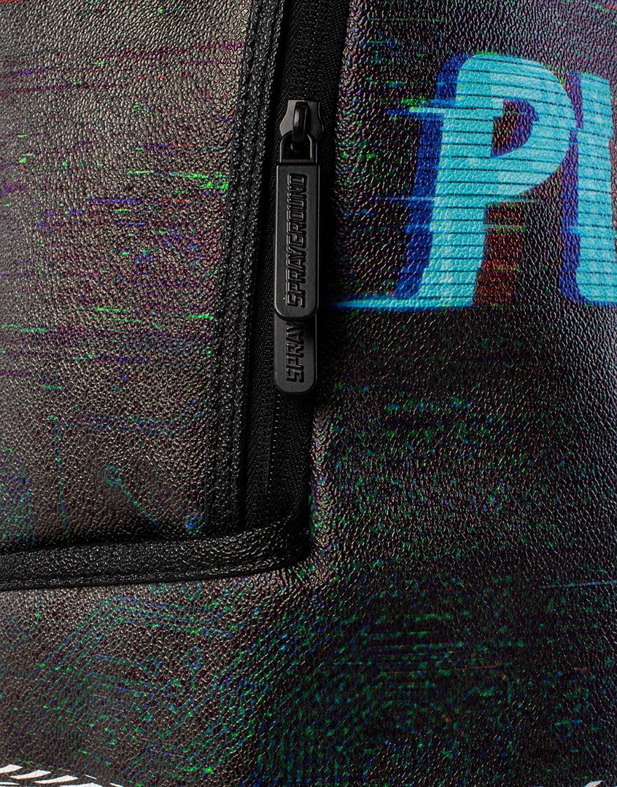 ExteriorDimensions: 18' x 6' x 11.5' ∙ Front zipper pocket ∙ Side pockets ∙ Zippered Stash pocket ∙ Ergonomic mesh back padding ∙ Adjustable Straps for custom sizing ∙ Nylon Zippers with Metal Hardware ∙ Metal 'Sprayground Authentic' badge ∙ Slide through back sleeve connects to Carry on luggage to free your hands