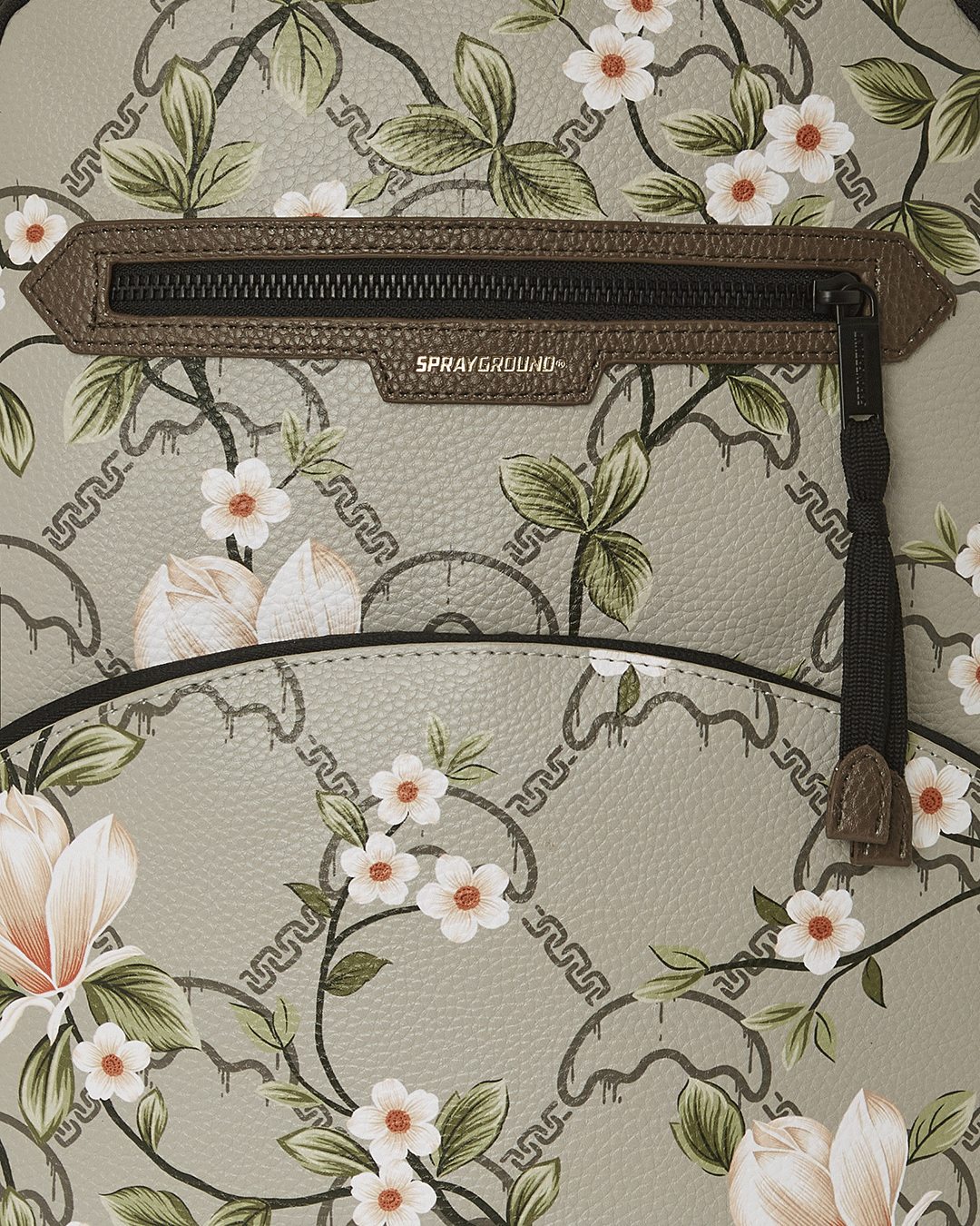 Dimensions: 18' x 6' x 11.5' • Front zipper pocket • Side pockets • Zippered Stash pocket • Separate velour sunglass compartment • Ergonomic mesh back padding • Adjustable Straps for custom sizing • Gold zippers with metal hardware • Metal 'Sprayground Authentic' badge • Slide through back sleeve connects to carry-on luggage to free your hands