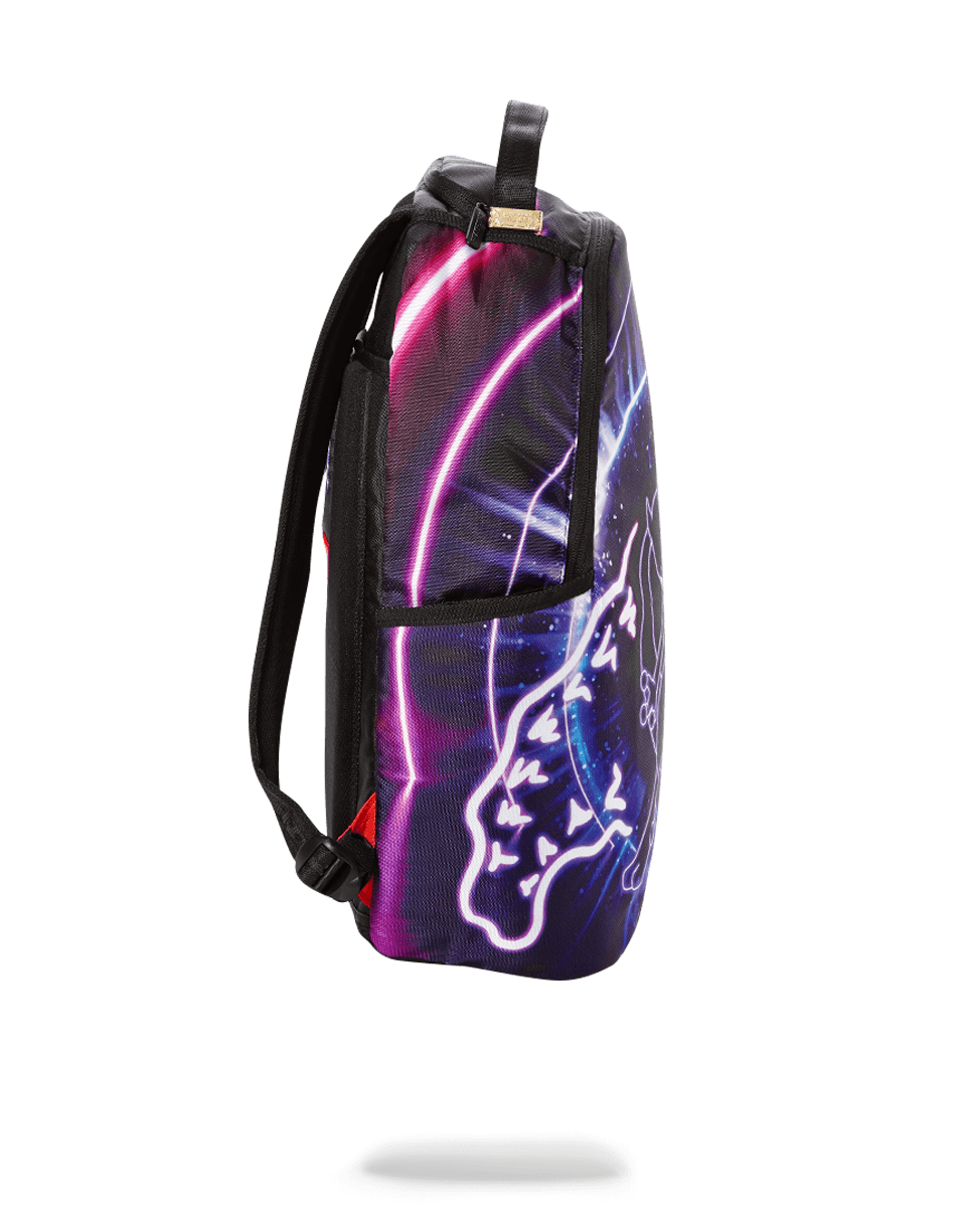 ExteriorDimensions: 18' x 6' x 11.5' ∙ Front zipper pocket ∙ Side pockets ∙ Zippered Stash pocket ∙ Ergonomic mesh back padding ∙ Adjustable Straps for custom sizing ∙ Nylon Zippers with Metal Hardware ∙ Metal 'Sprayground Authentic' badge ∙ Slide through back sleeve connects to Carry on luggage to free your hands