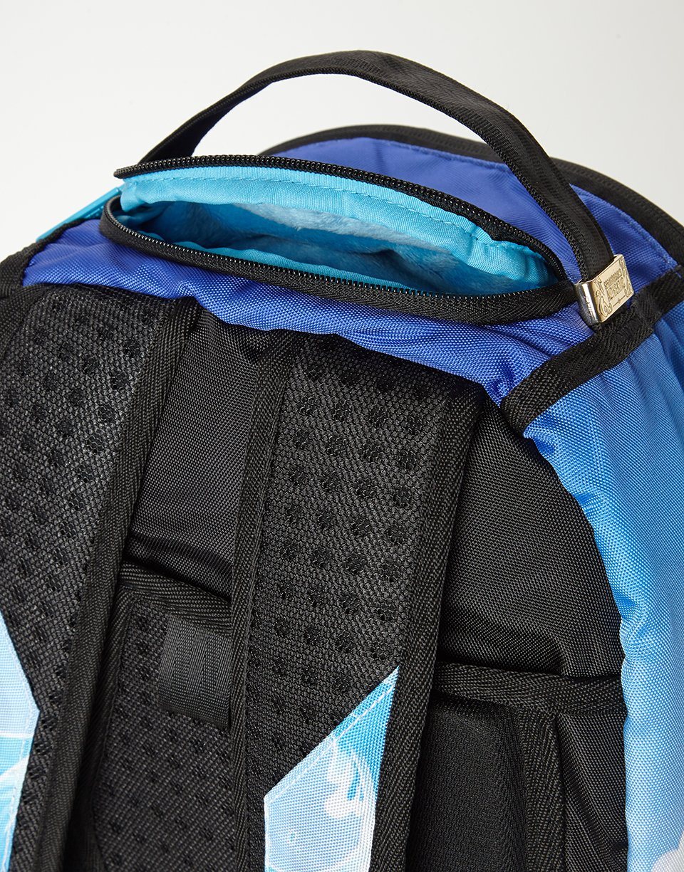 ExteriorDimensions: 18' x 6' x 11.5' ∙ Front zipper pocket ∙ Side pockets ∙ Zippered Stash pocket ∙ Ergonomic mesh back padding ∙ Adjustable Straps for custom sizing ∙ Nylon Zippers with Metal Hardware ∙ Metal 'Sprayground Authentic' badge ∙ Slide through back sleeve connects to Carry on luggage to free your hands