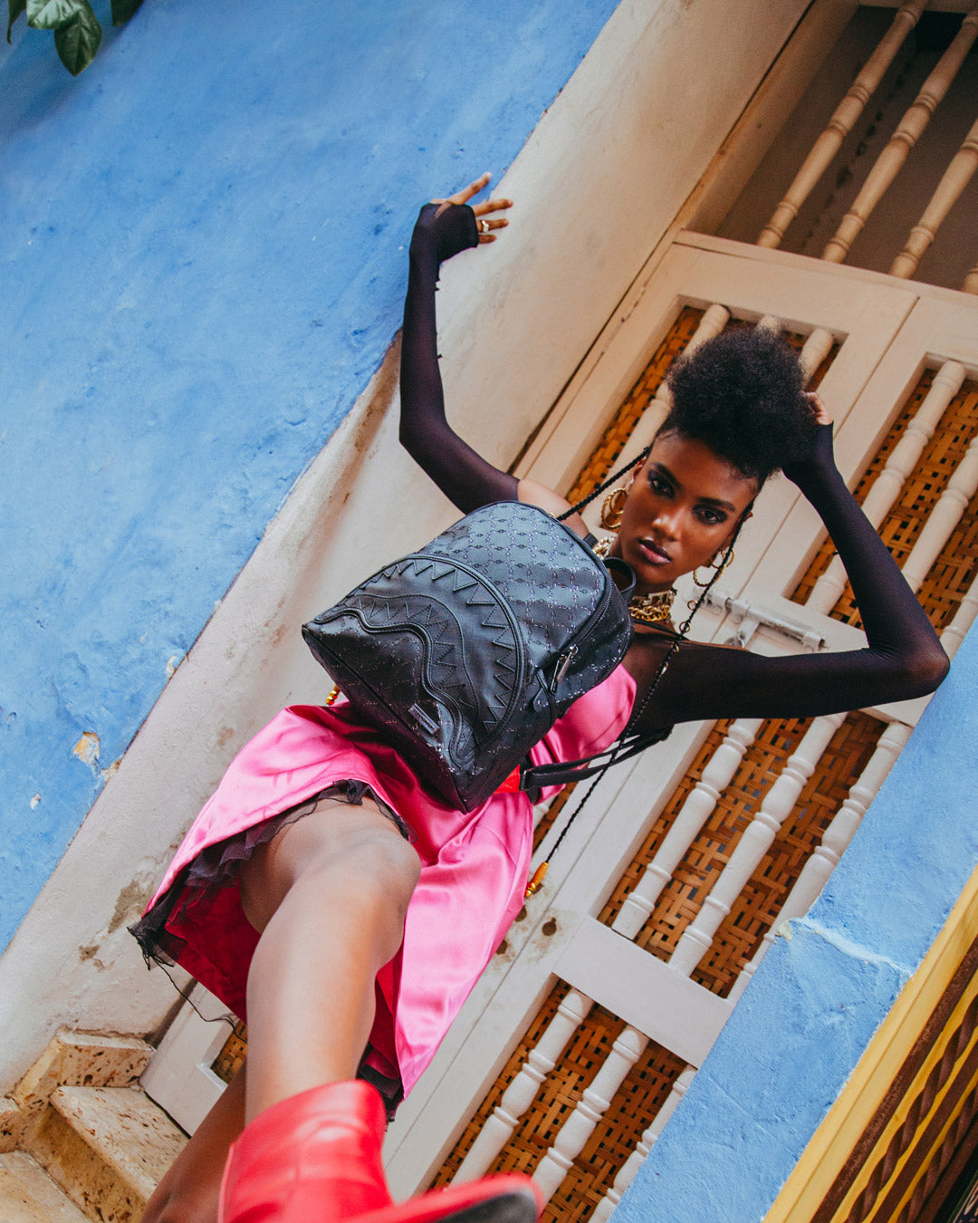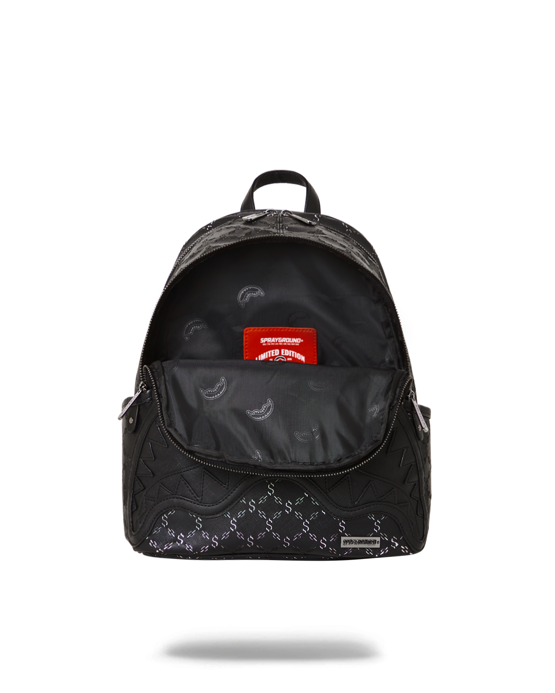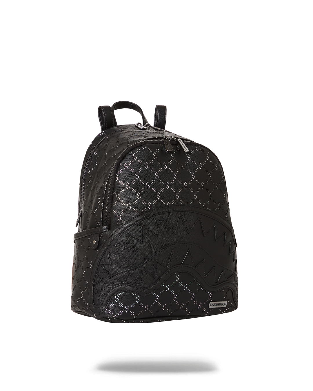 100% PVC with exclusive laser cut money logo pattern applied over metallic iridescent fabric to give a touch of shimmer to the fabric