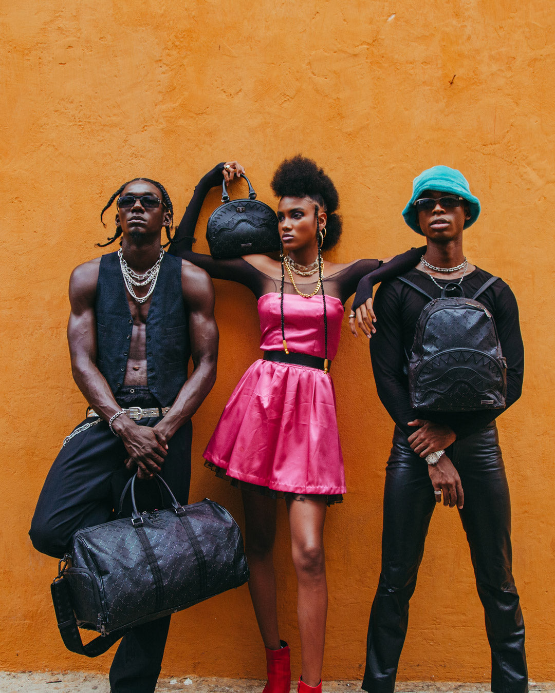 Dimensions: 10' x 5' x 11.5' • Two large main zippered compartments • Side pockets • Zippered Stash pocket • Adjustable straps for custom sizing • Gold zippers with metal hardware