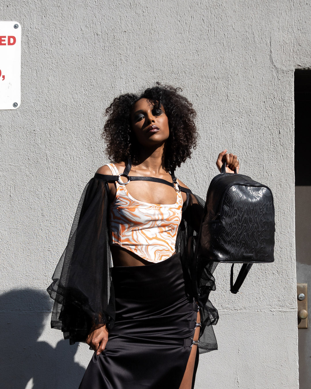 Dimensions: 10' x 5' x 11.5' • Two large main zippered compartments • Side pockets • Zippered Stash pocket • Adjustable straps for custom sizing • Gold zippers with metal hardware