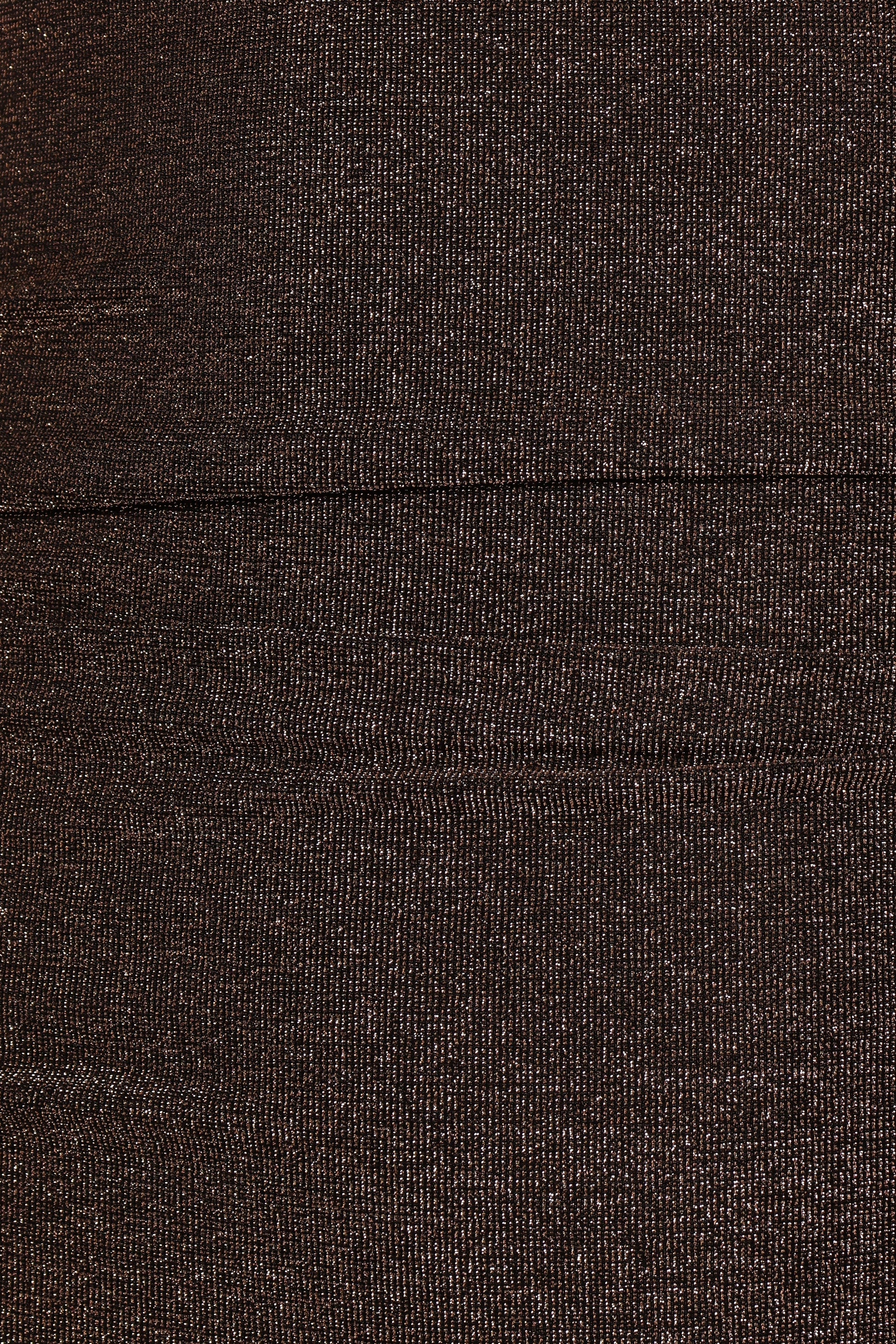 | DETAILS This fashion-forward piece, crafted with a luxurious lurex metallic thread, captures light with every movement, adding a touch of glamour to your ensemble. Its maxi length and bodycon style gracefully hug your silhouette, while the gathered detail along the sides offers a flattering fit.