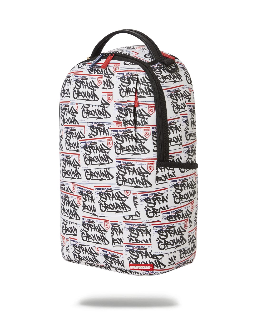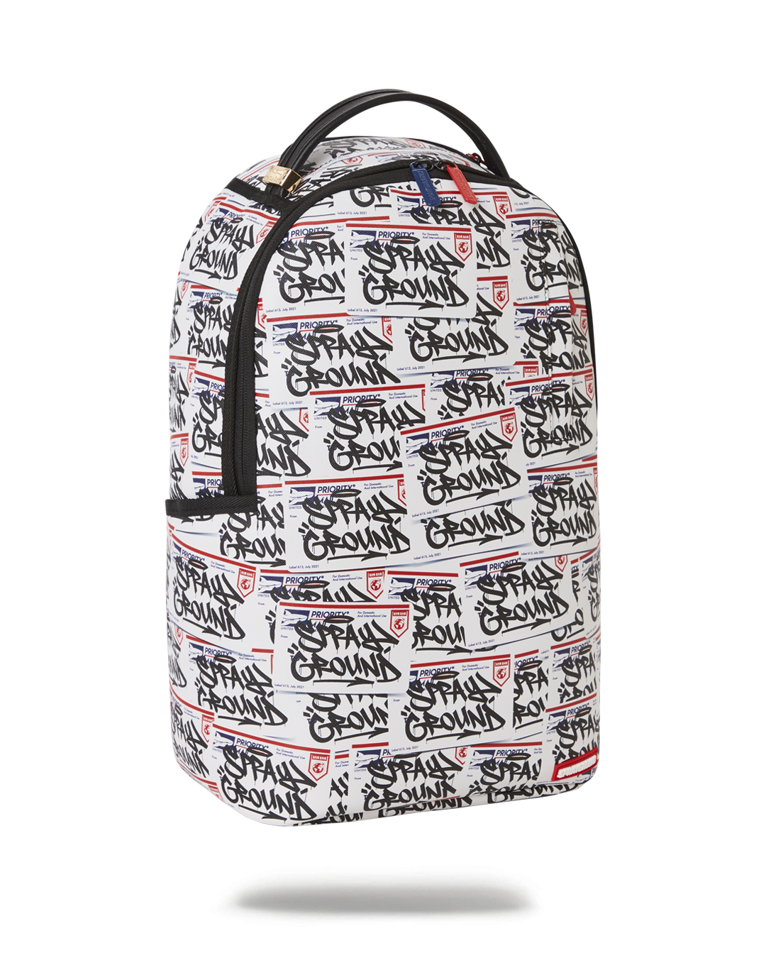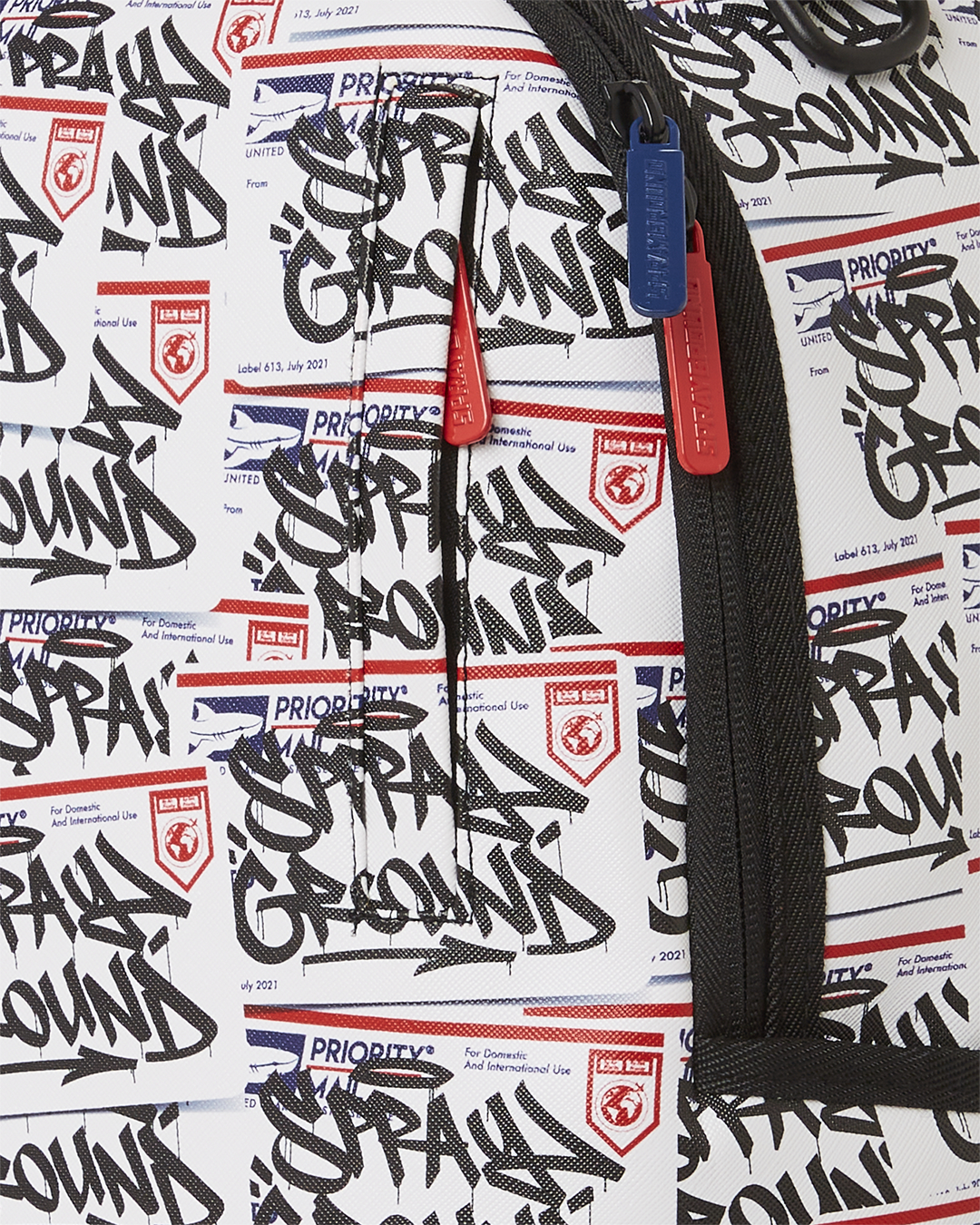 ExteriorDimensions: 18' x 6' x 11.5' • Front zipper pocket • Side pockets • Zippered Stash pocket • Separate velour sunglass compartment • Ergonomic mesh back padding • Adjustable Straps for custom sizing • Green zippers with metal hardware • Metal 'Sprayground Authentic' badge • Slide through back sleeve connects to carry on luggage to free your hands