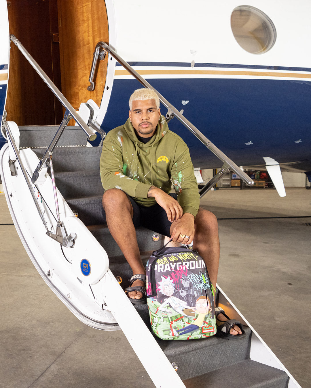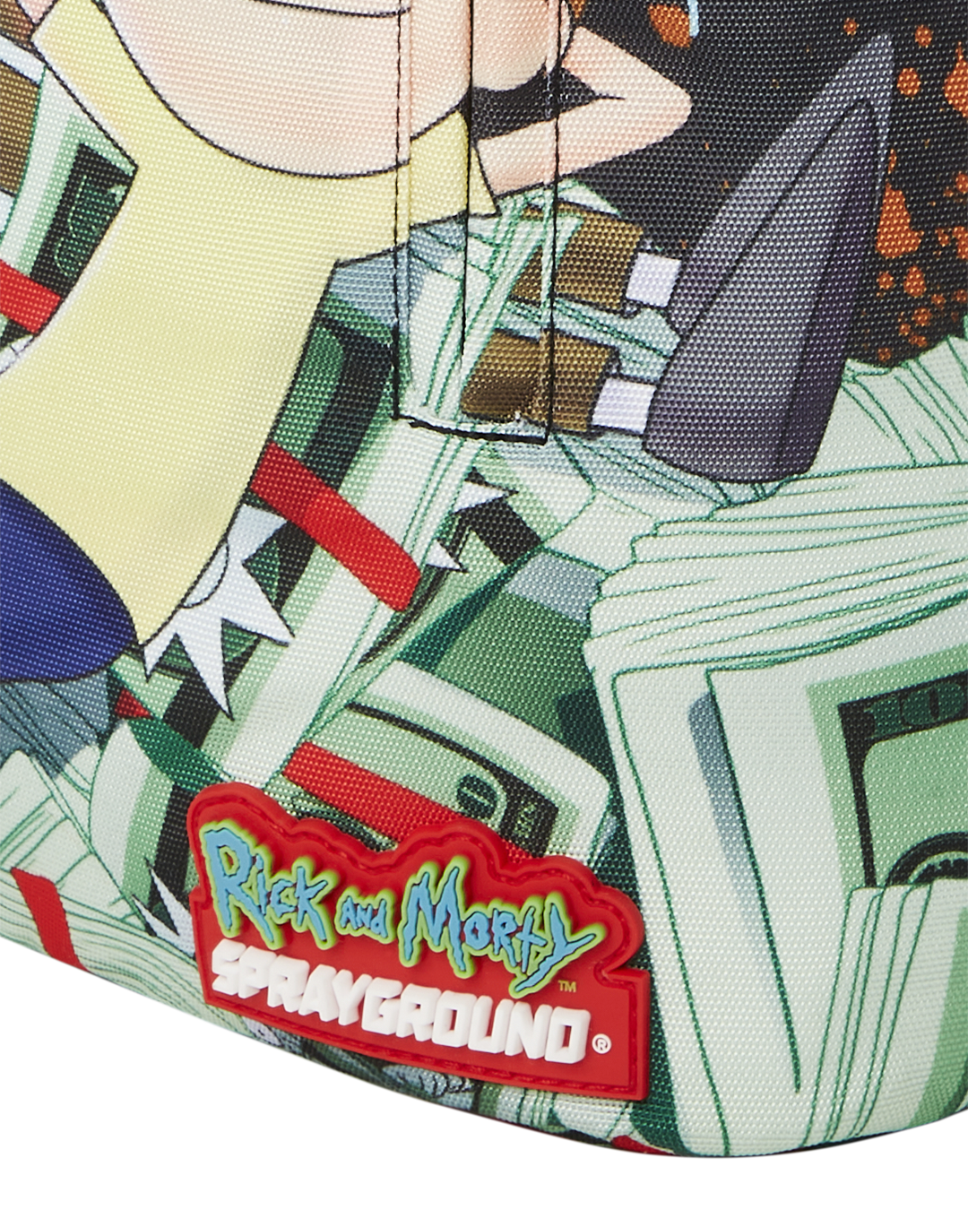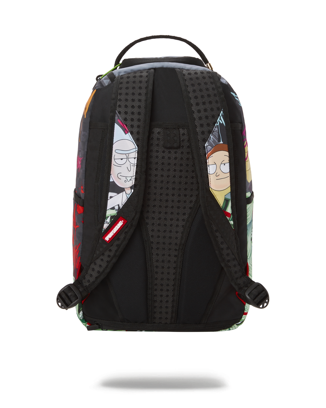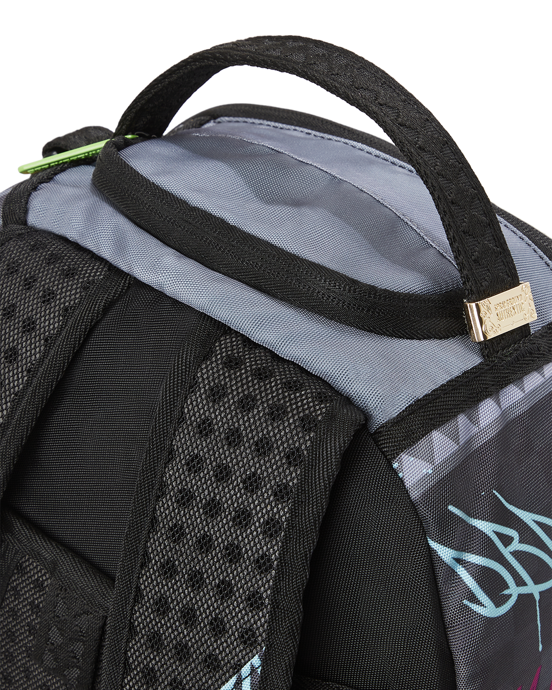 ExteriorDimensions: 18' x 6' x 11.5' • Front zipper pocket • Side pockets • Zippered Stash pocket • Separate velour sunglass compartment • Ergonomic mesh back padding • Adjustable Straps for custom sizing • Green zippers with metal hardware • Metal 'Sprayground Authentic' badge • Slide through back sleeve connects to carry on luggage to free your hands