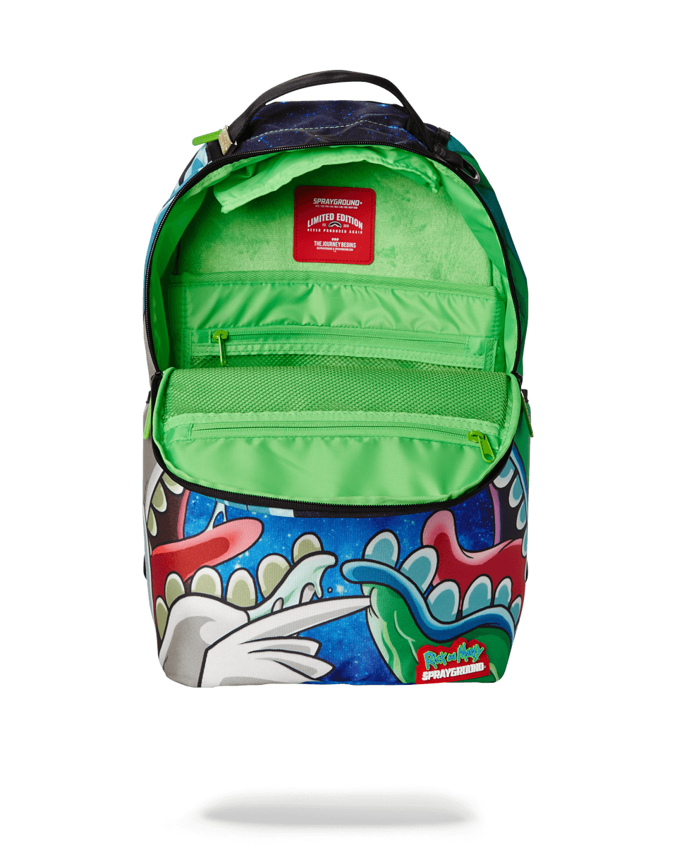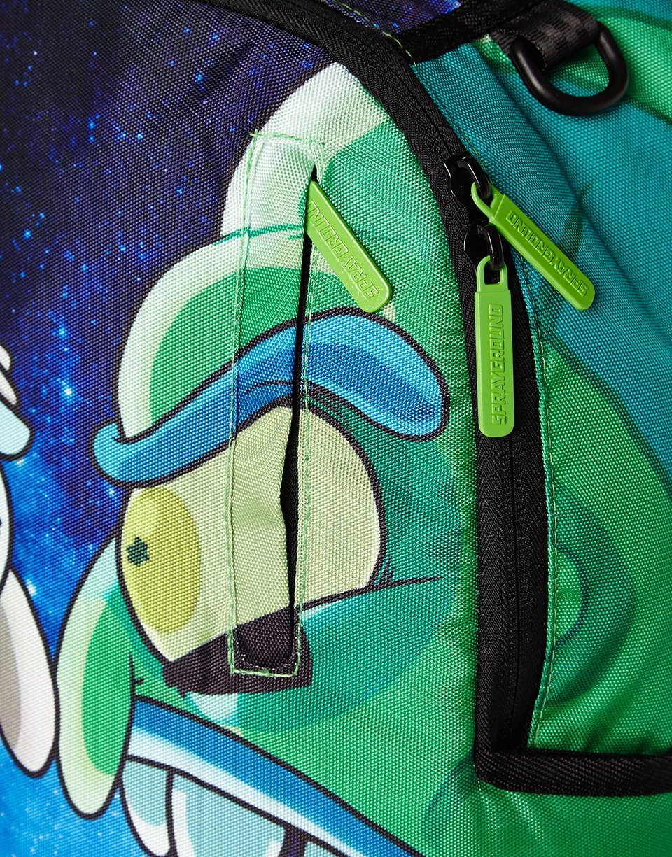 ExteriorDimensions: 18' x 6' x 11.5' ∙ Front zipper pocket ∙ Side pockets ∙ Zippered Stash pocket ∙ Ergonomic mesh back padding ∙ Adjustable Straps for custom sizing ∙ Nylon Zippers with Metal Hardware ∙ Metal 'Sprayground Authentic' badge ∙ Slide through back sleeve connects to Carry on luggage to free your hands