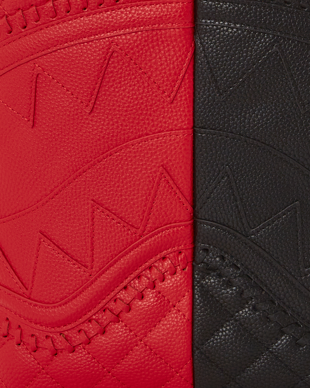 Dimensions: 18' x 6' x 11.5' • Front zipper pocket • Side pockets • Zippered Stash pocket • Separate velour sunglass compartment • Ergonomic mesh back padding • Adjustable Straps for custom sizing • Gold zippers with metal hardware • Metal 'Sprayground Authentic' badge • Slide through back sleeve connects to carry-on luggage to free your hands