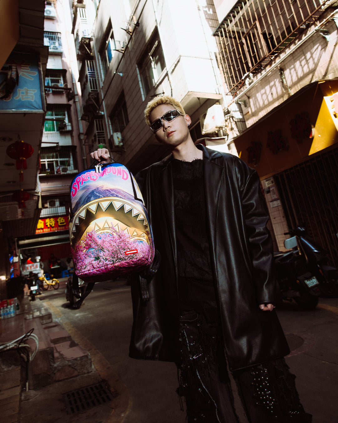 Dimensions: 18' x 6' x 11.5' • Front zipper pocket • Side pockets • Zippered Stash pocket • Separate velour sunglass compartment • Ergonomic mesh back padding • Adjustable Straps for custom sizing • Gold zippers with metal hardware • Metal 'Sprayground Authentic' badge • Slide through back sleeve connects to carry-on luggage to free your hands