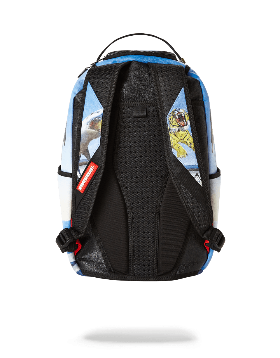 ExteriorDimensions: 18' x 6' x 11.5' • Front zipper pocket • Side pockets • Zippered Stash pocket • Ergonomic mesh back padding • Adjustable Straps for custom sizing • Nylon Zippers with Metal Hardware • Metal 'Sprayground Authentic' badge • Slide through back sleeve connects to Carry on luggage to free your hands