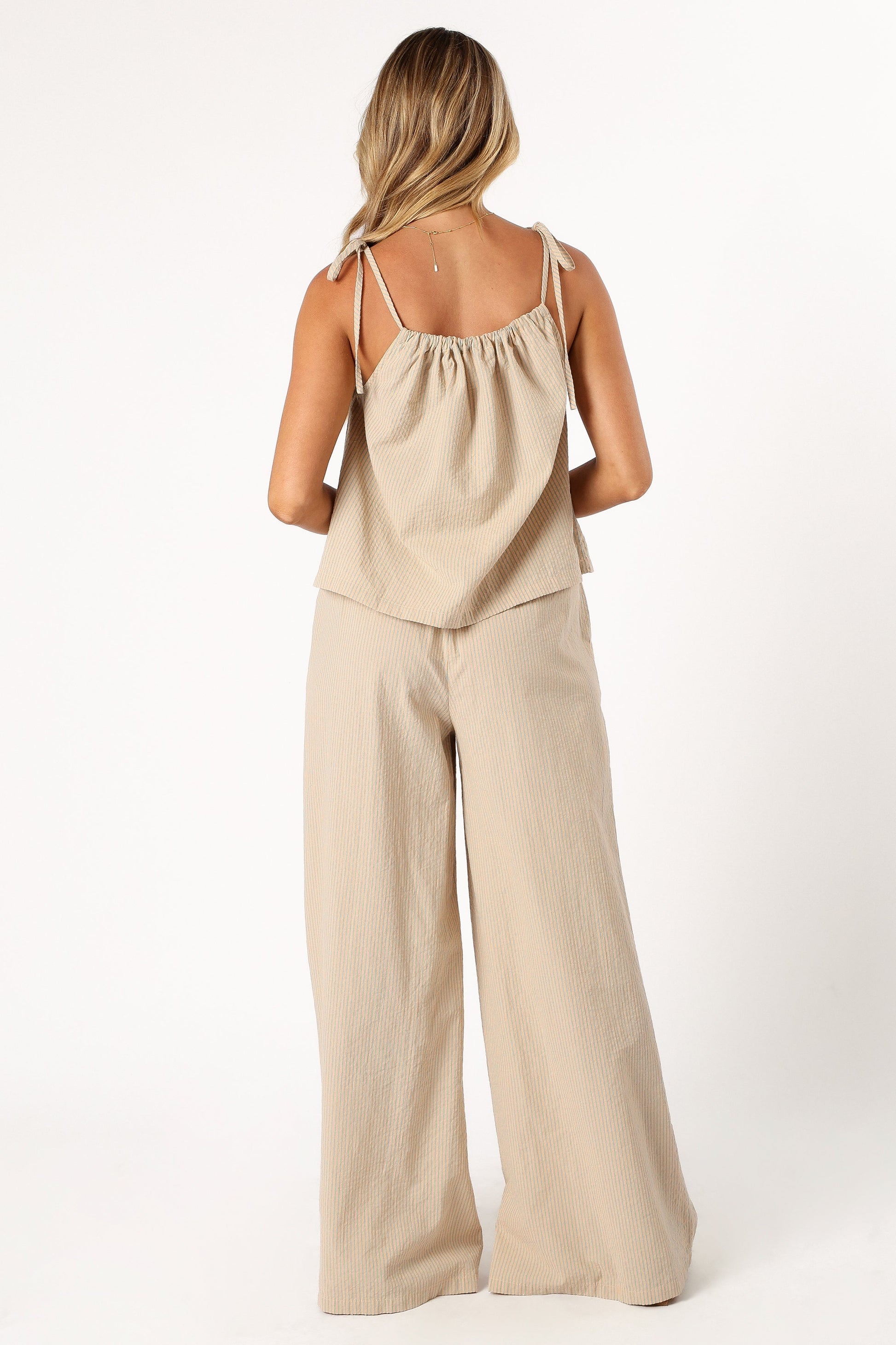 DETAILS Designed for today's dynamic woman, these high-waisted, wide-leg pants radiate effortless chic comfort. The elasticised waistband offers a snug, customisable fit for all-day wear, while the functional pockets add a practical touch to their sophisticated silhouette.