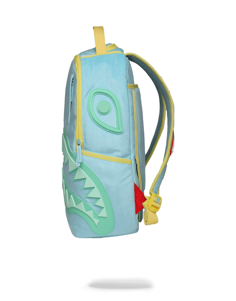 Designed in collaboration with the one and only ICY GIRL- this bag features velour fabric in a bright pastel color with a 3d molded rubber shark. Keep checking back for updates on the release of this backpack, as there are only a few available.