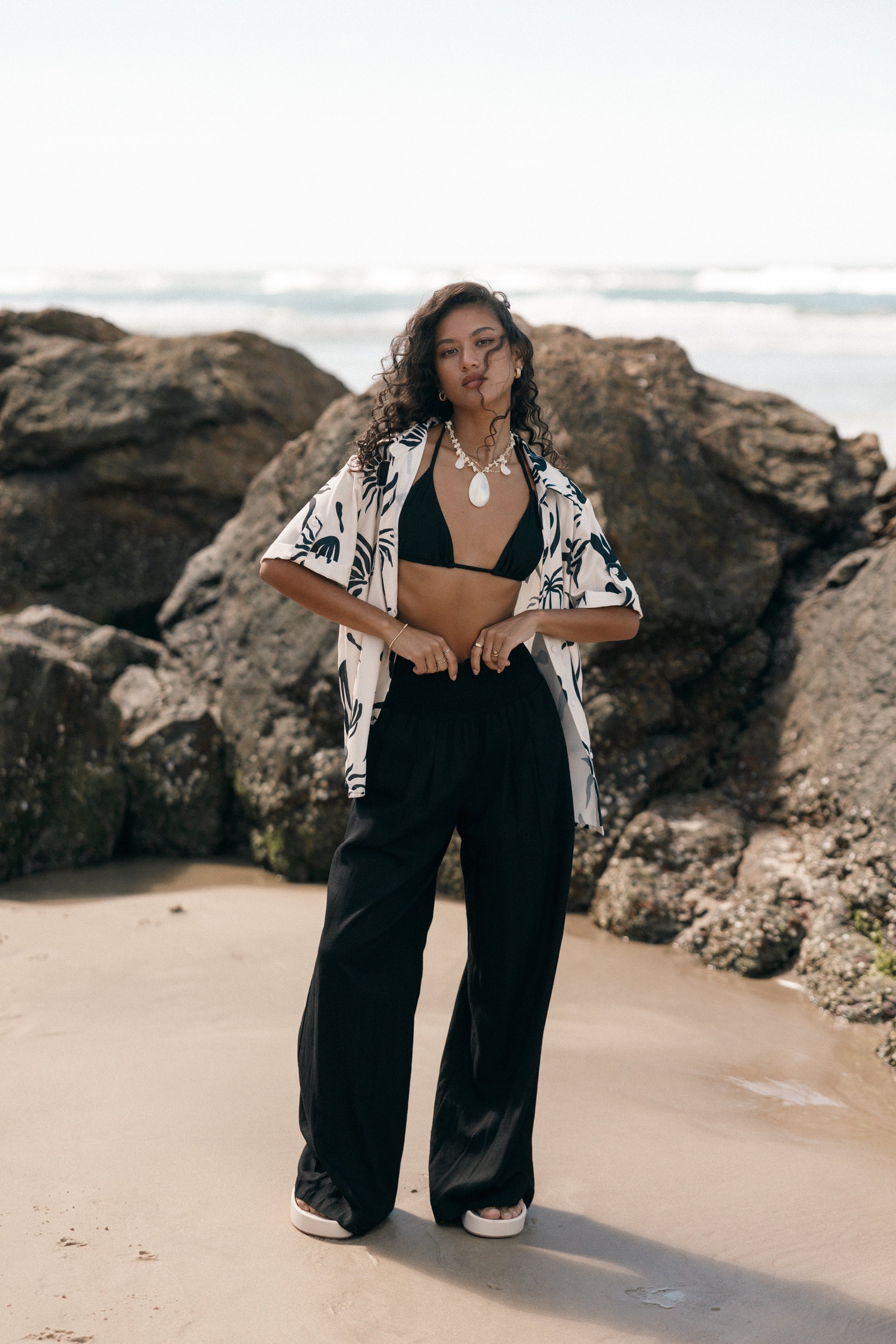 Sawyer Short Sleeve Shirt - Beige Black