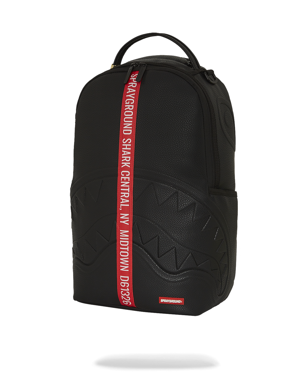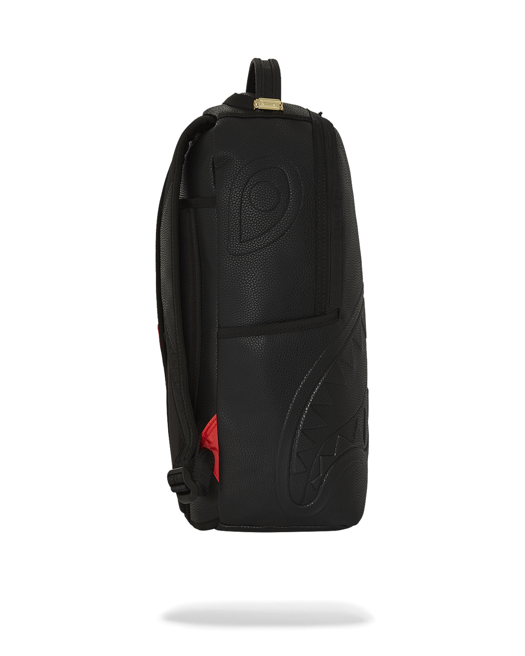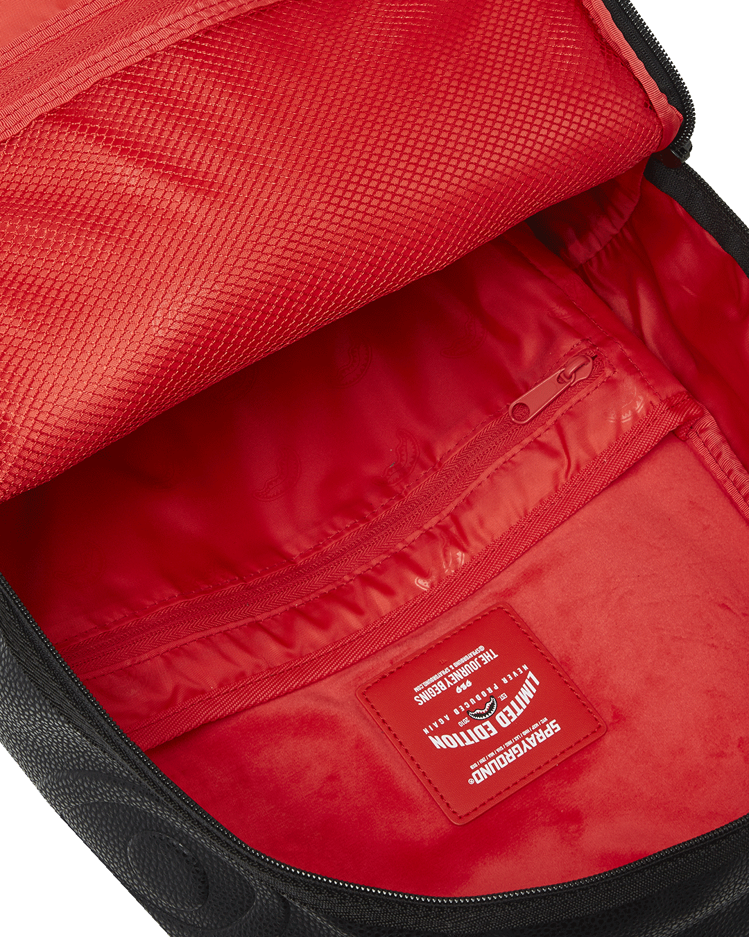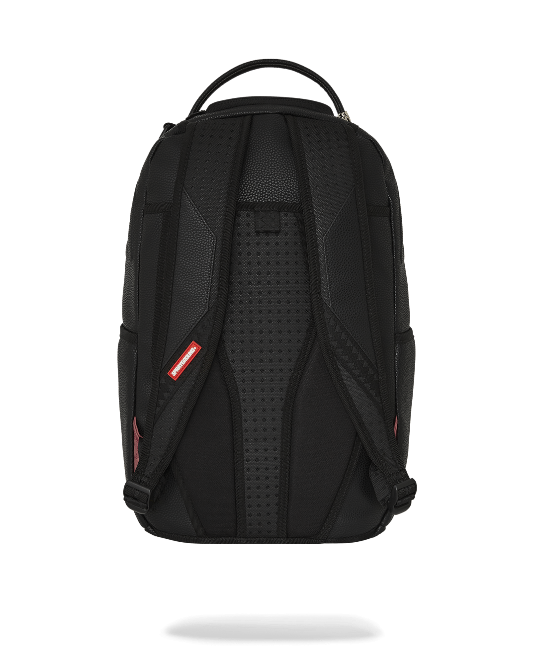 Dimensions: 18' x 6' x 11.5' • Front zipper pocket • Side pockets • Zippered Stash pocket • Separate velour sunglass compartment • Ergonomic mesh back padding • Adjustable Straps for custom sizing • Gold zippers with metal hardware • Metal 'Sprayground Authentic' badge • Slide through back sleeve connects to carry-on luggage to free your hands