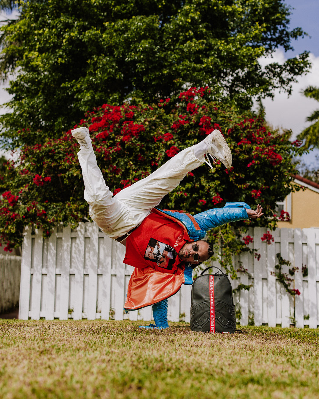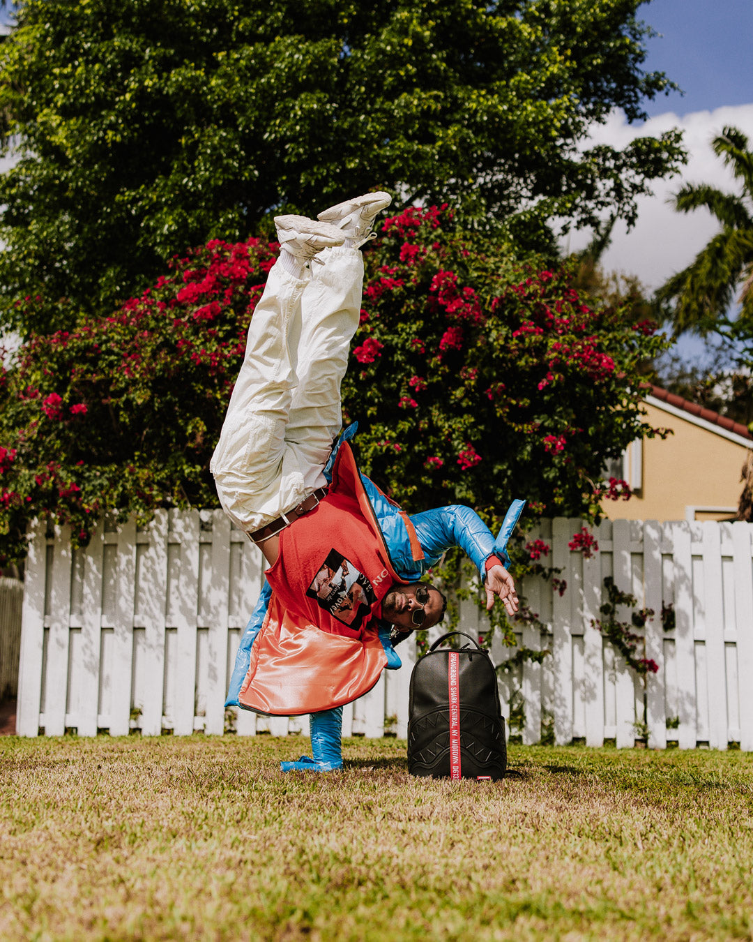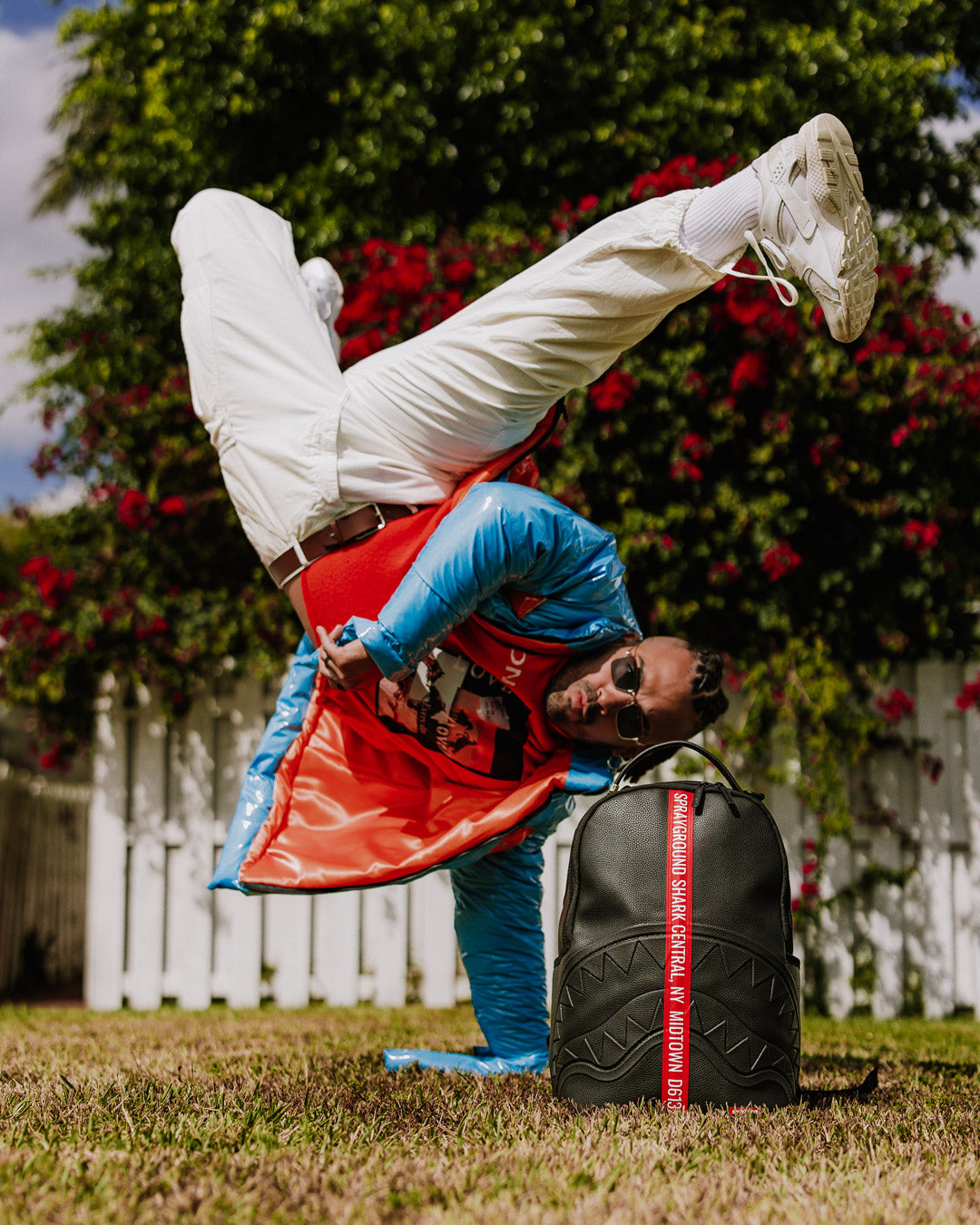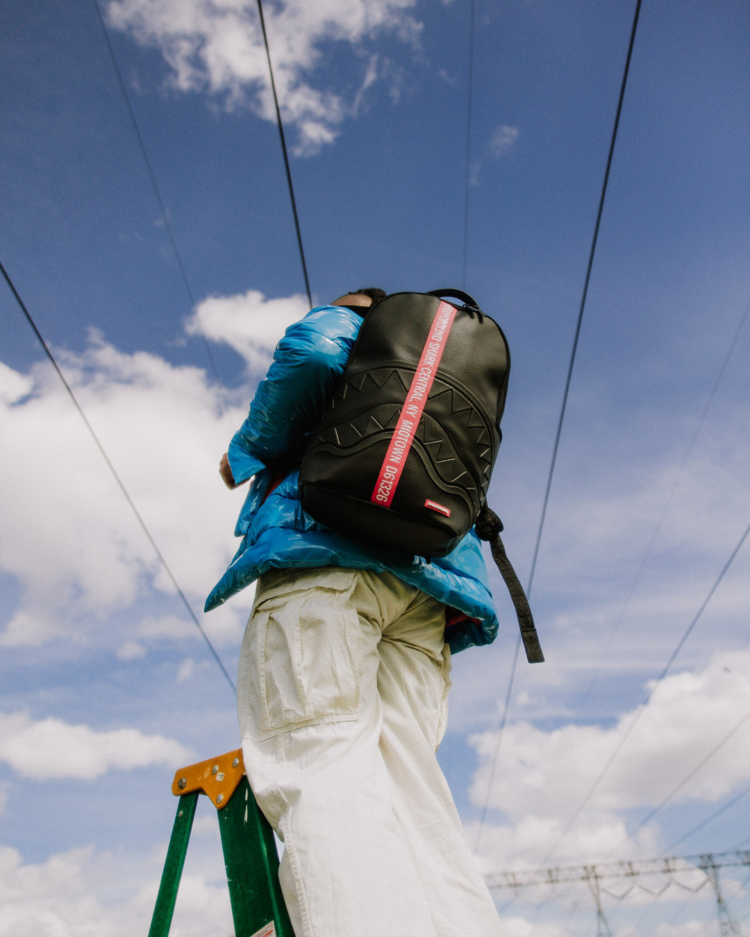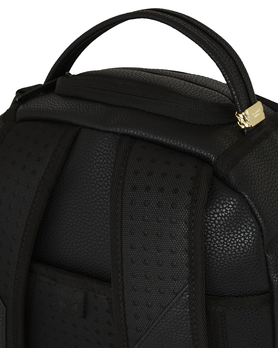 Dimensions: 18' x 6' x 11.5' • Front zipper pocket • Side pockets • Zippered Stash pocket • Separate velour sunglass compartment • Ergonomic mesh back padding • Adjustable Straps for custom sizing • Gold zippers with metal hardware • Metal 'Sprayground Authentic' badge • Slide through back sleeve connects to carry-on luggage to free your hands