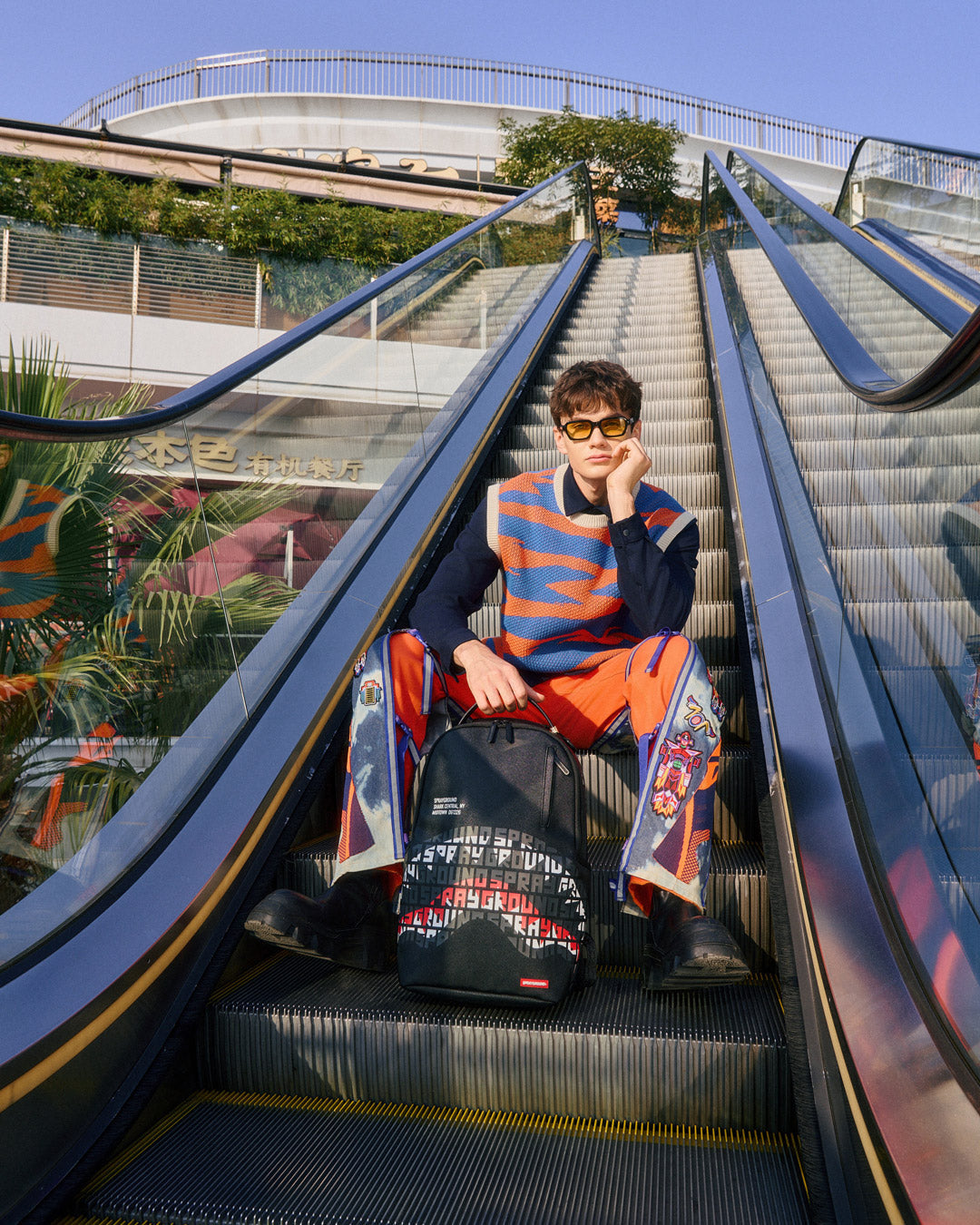 Dimensions: 18' x 6' x 11.5' • Front zipper pocket • Side pockets • Zippered Stash pocket • Separate velour sunglass compartment • Ergonomic mesh back padding • Adjustable Straps for custom sizing • Gold zippers with metal hardware • Metal 'Sprayground Authentic' badge • Slide through back sleeve connects to carry-on luggage to free your hands