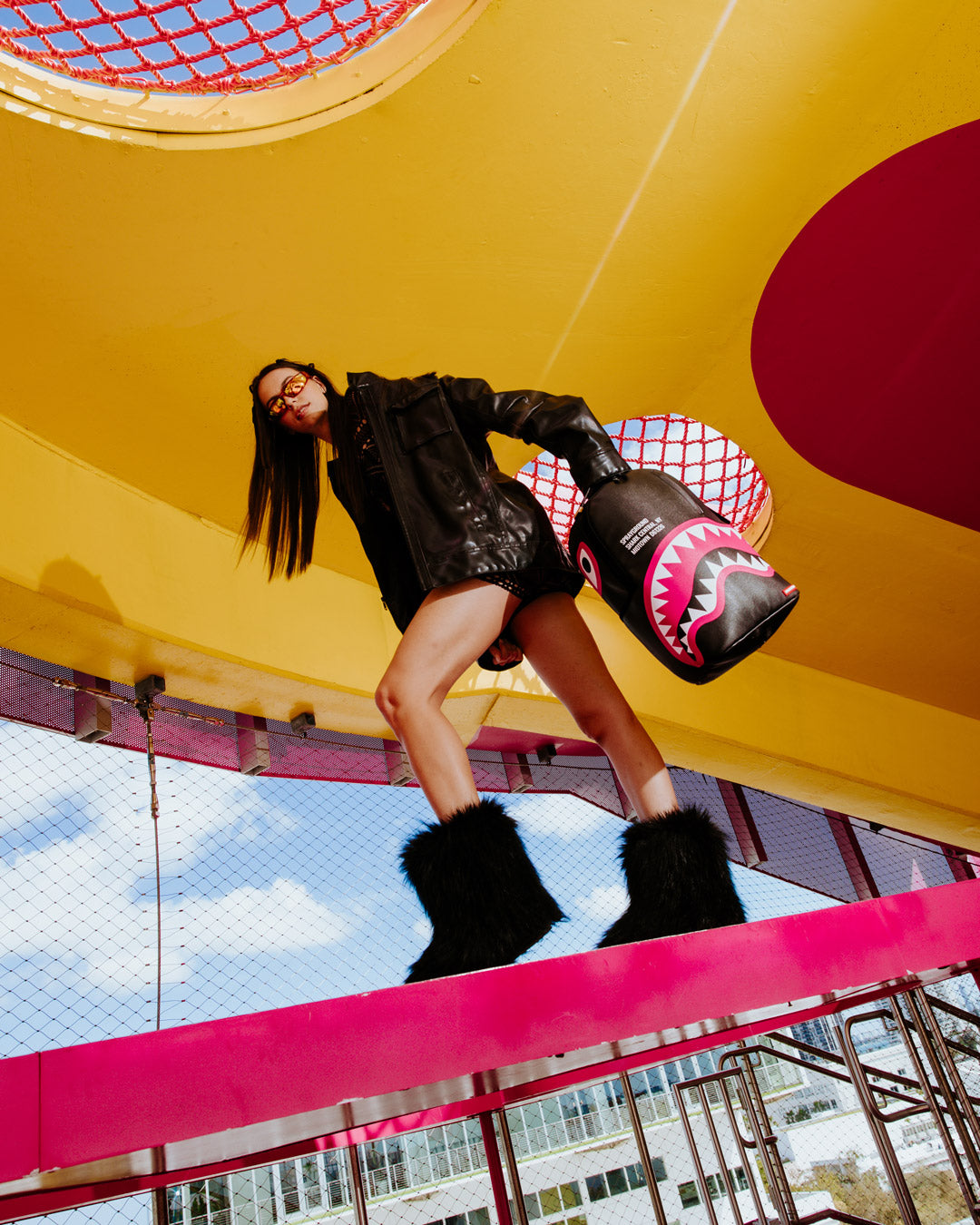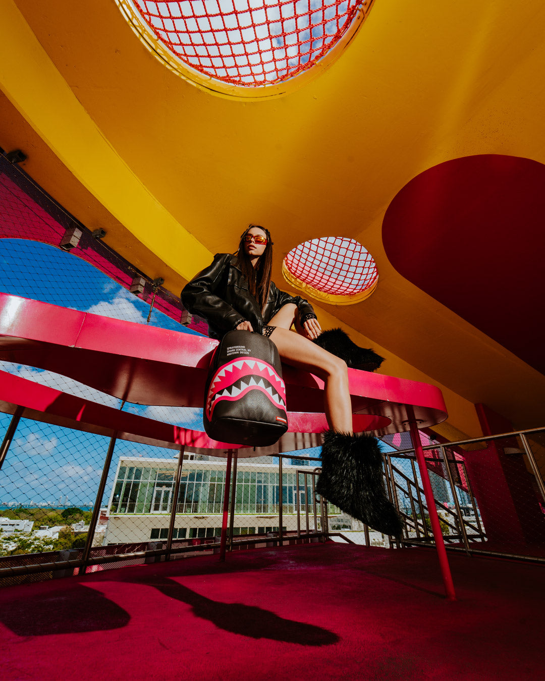 Dimensions: 18' x 6' x 11.5' • Front zipper pocket • Side pockets • Zippered Stash pocket • Separate velour sunglass compartment • Ergonomic mesh back padding • Adjustable Straps for custom sizing • Gold zippers with metal hardware • Metal 'Sprayground Authentic' badge • Slide through back sleeve connects to carry-on luggage to free your hands