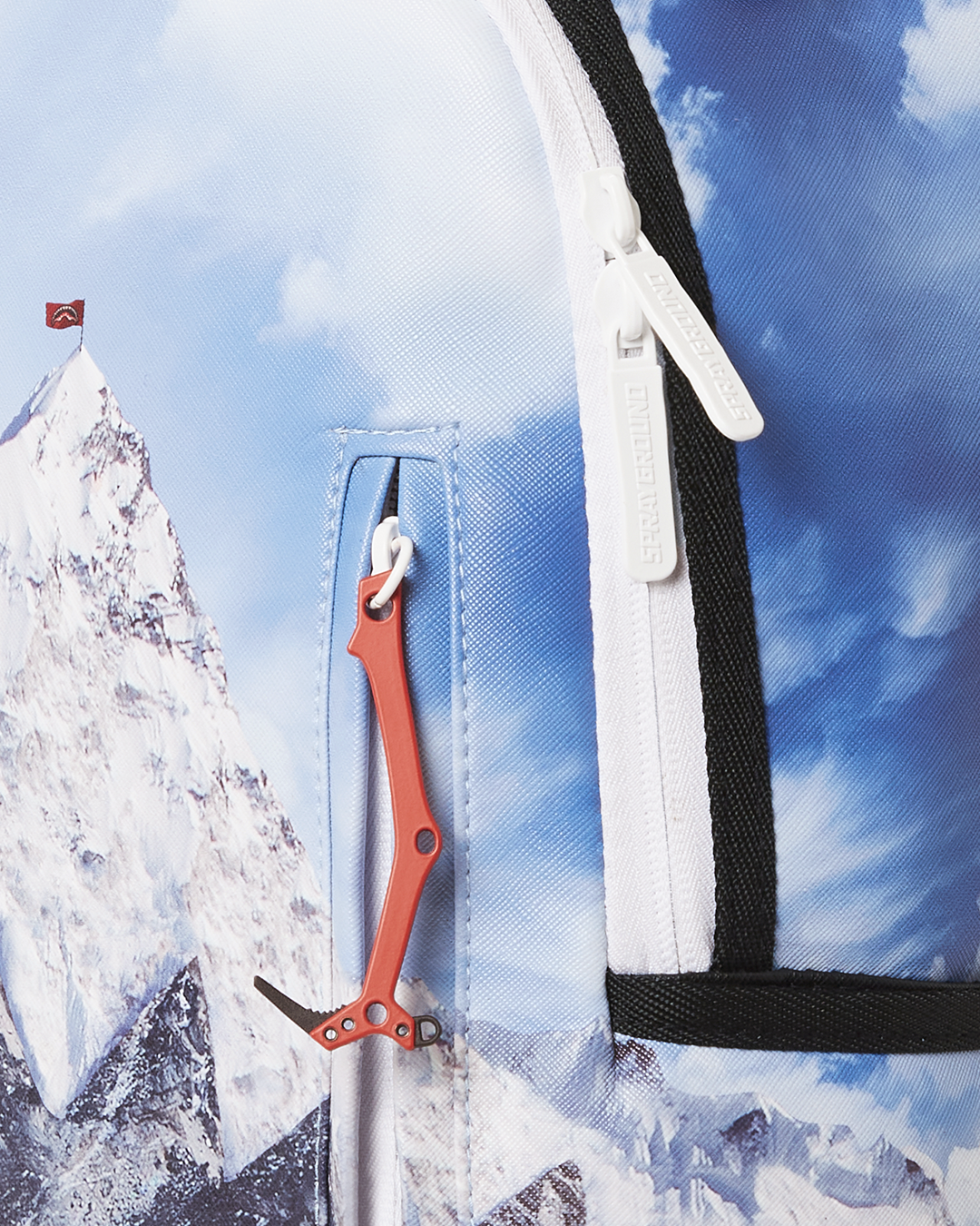 Dimensions: 18' x 6' x 11.5' • Front zipper pocket • Side pockets • Zippered Stash pocket • Separate velour sunglass compartment • Ergonomic mesh back padding • Adjustable Straps for custom sizing • Gold zippers with metal hardware • Metal 'Sprayground Authentic' badge • Slide through back sleeve connects to carry-on luggage to free your hands
