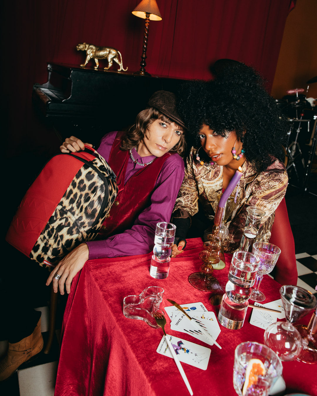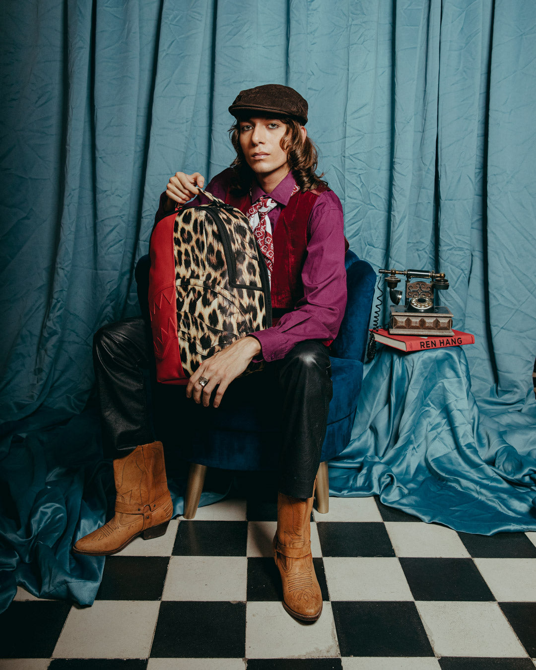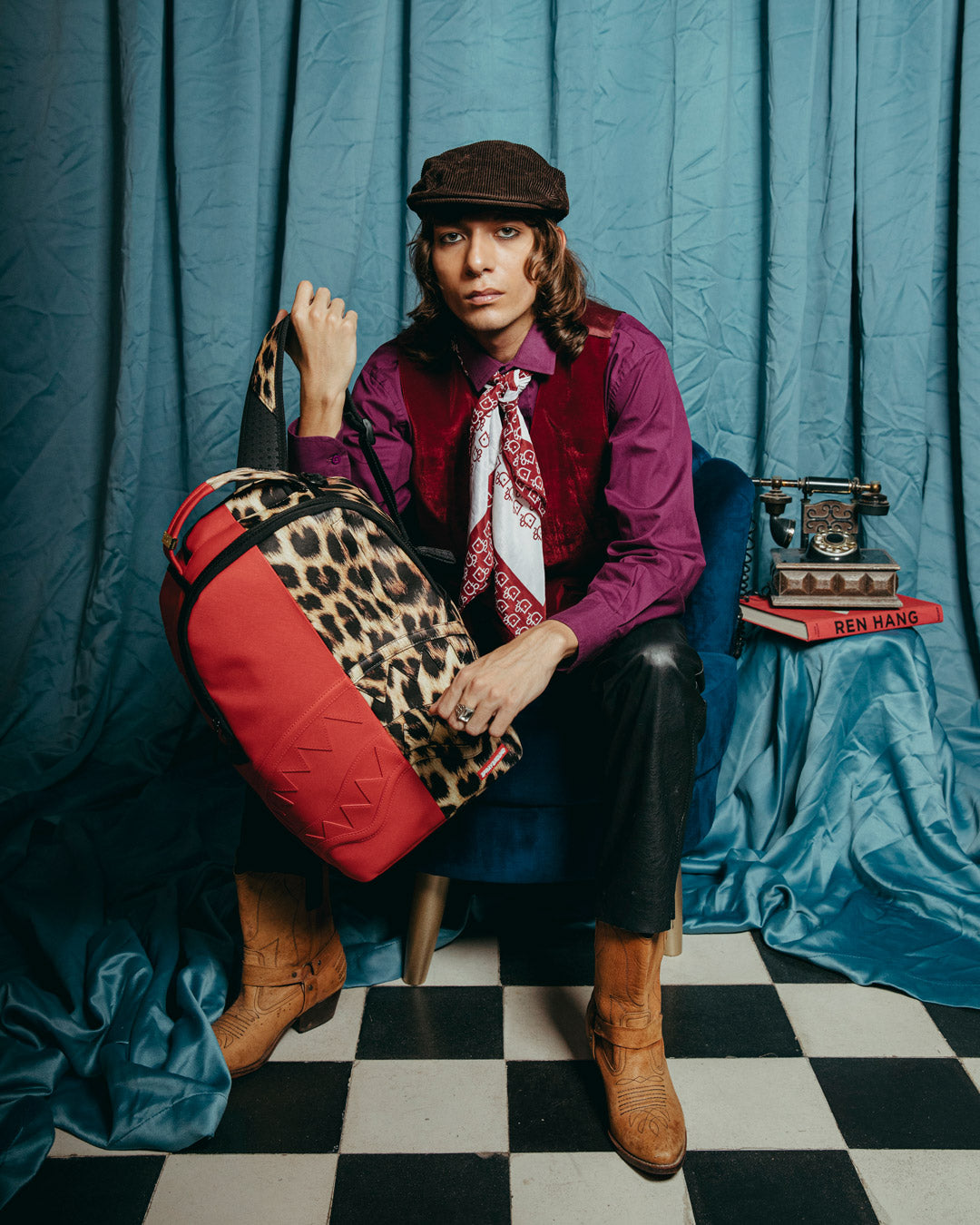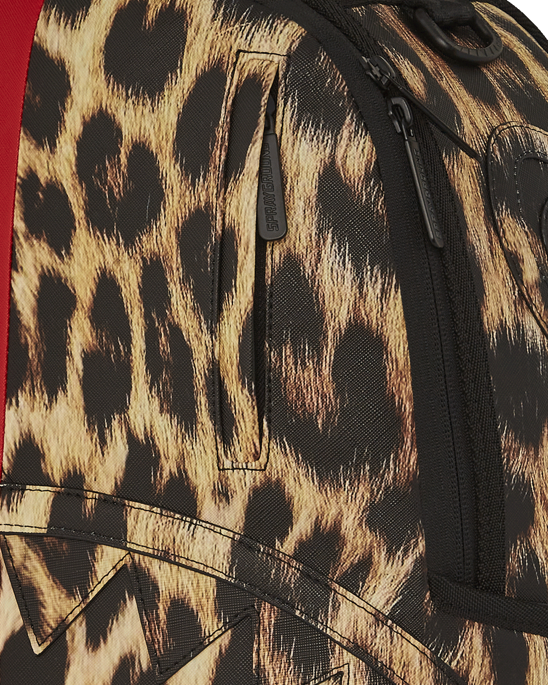 Dimensions: 18' x 6' x 11.5' • Front zipper pocket • Side pockets • Zippered Stash pocket • Separate velour sunglass compartment • Ergonomic mesh back padding • Adjustable Straps for custom sizing • Gold zippers with metal hardware • Metal 'Sprayground Authentic' badge • Slide through back sleeve connects to carry-on luggage to free your hands